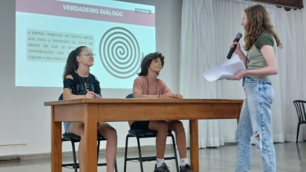 «No momento em que cheguei percebi que ia ser muito diferente da primeira etapa do curso de liderança, mesmo tendo ficado maravilhada com a primeira, houve atividades nesta segunda etapa em que eu fiquei encantada, nelas aprendemos com ações, refletimos nossas ações, ouvimos e falamos, aprendemos a agir em grupo, mas principalmente ouvir todos e saber a melhor maneira de lidar em grupo, socializar e entender o lado de todos.» (Bianca F.)