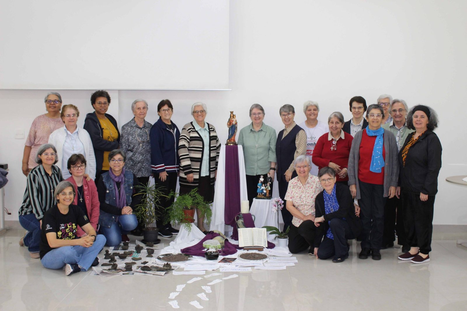 E assim, as participantes tiveram a oportunidade de vivenciar a mística do terceiro capítulo do documento, por meio de um momento orante, para contemplar o Senhor da vida com base no relato bíblico das Bodas de Caná (João 2, 1-11). Cada Irmã realizou a dinâmica de colocar a mão na terra da própria vida e, como finalização desse momento, cada Animadora de comunidade fez sua partilha apresentando um símbolo de sua reflexão que foi modelado com argila.