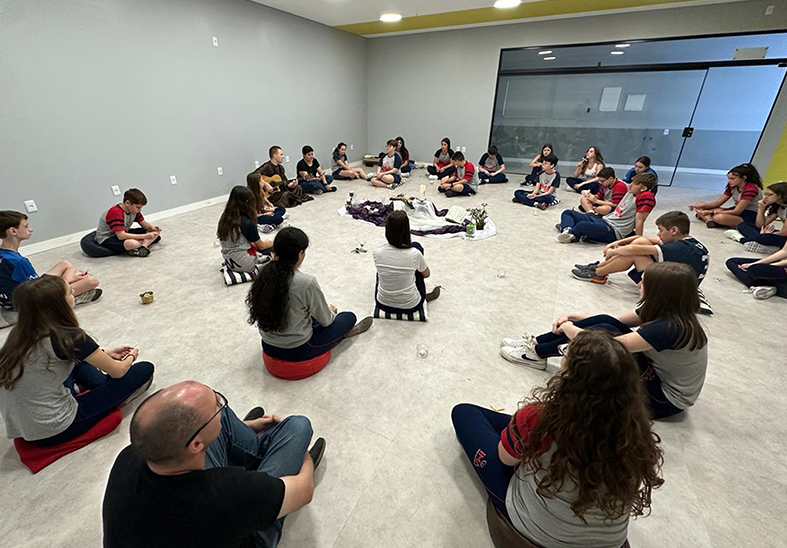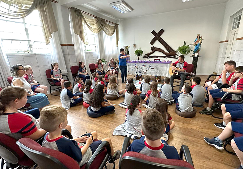 Para os estudantes do Ensino Fundamental 2, Ensino Médio e para os colaboradores, a Celebração destacou a vitória da vida sobre a morte. Em uma dinâmica, os participantes usaram linha e palitos de sorvete para confeccionar uma cruz. Sempre que olharem para o objeto, lembrarão que nunca estão sozinhos e que Jesus os ama.