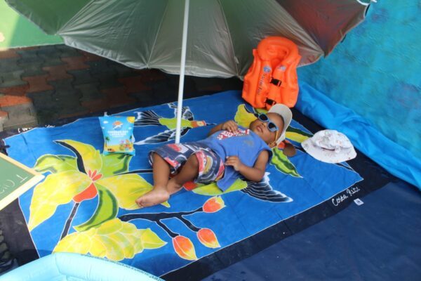 E continuam: «Nossa caçulinha, Helena, aproveitava seu momento de spa com muita tranquilidade debaixo de uma refrescante sombra. Nosso pequeno Heitor também quis um momento relaxante para depois se aventurar numa divertida brincadeira em nossa praia. Esse momento proporcionou aos bebês oportunidades de interação e exploração, aguçando a curiosidade e a imaginação. Nesse momento, a maior diversão era se refrescar em um dia tão quente: cada um com seu jeitinho de explorar, brincava e se divertia».