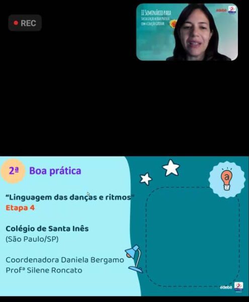 As escolas da Associação Educacional Irmãs Salesianas de São Paulo participaram inscrevendo 18 boas práticas. Dentre elas, 5 foram selecionadas pela Diretoria Executiva e pela Assessoria Pedagógica da RSB-Escolas, com a colaboração do Editorial da Edebê para serem compartilhadas nos dois dias do II Seminário Virtual “Girolhar”. Em destaque, as boas práticas da AEIS-SP foram: