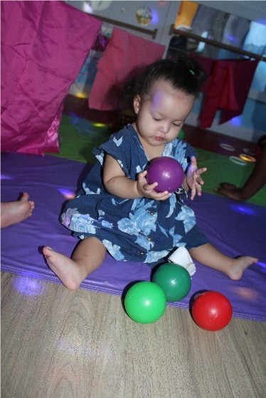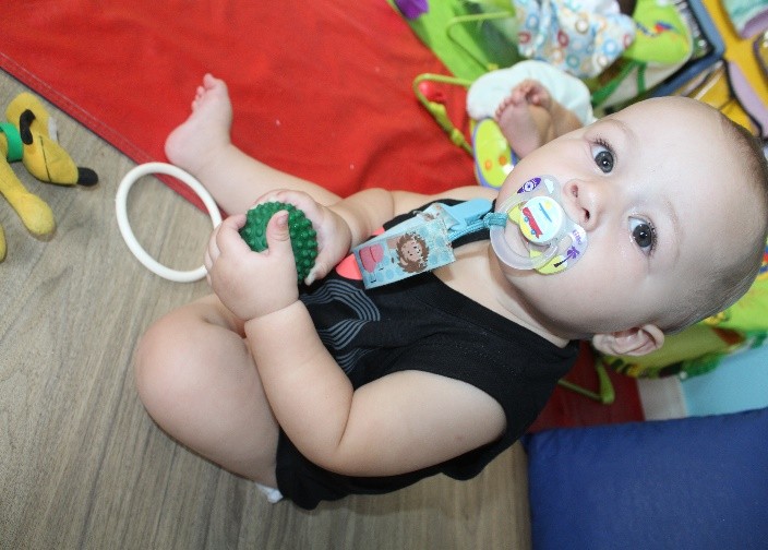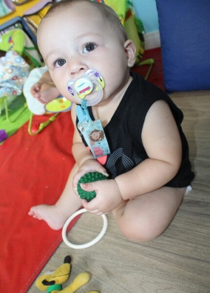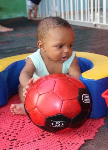 As educadoras Ângela e Francisca, do Berçário I, explicam que a turma é composta por bebês com idades entre 5 e 9 meses. «Esses bebês amam explorar cada espaço da sala, principalmente o parque. Eles participam de cada experiência que é realizada com muita alegria e diversão, apesar de ser ainda tão pequeninos», relatam as educadoras.