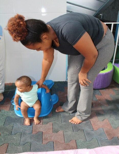 Uma outra bebê, em seu primeiro dia, veio acompanhada de sua vovó para o período de adaptação. A avó compartilhou que a bebê é bem cuidada pela família, com muito amor, e que ela dá o suporte necessário juntamente com a madrinha da criança.