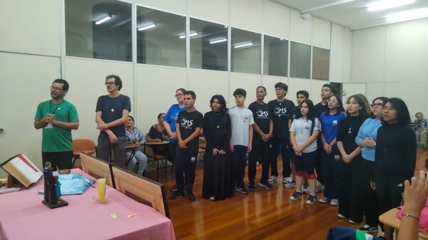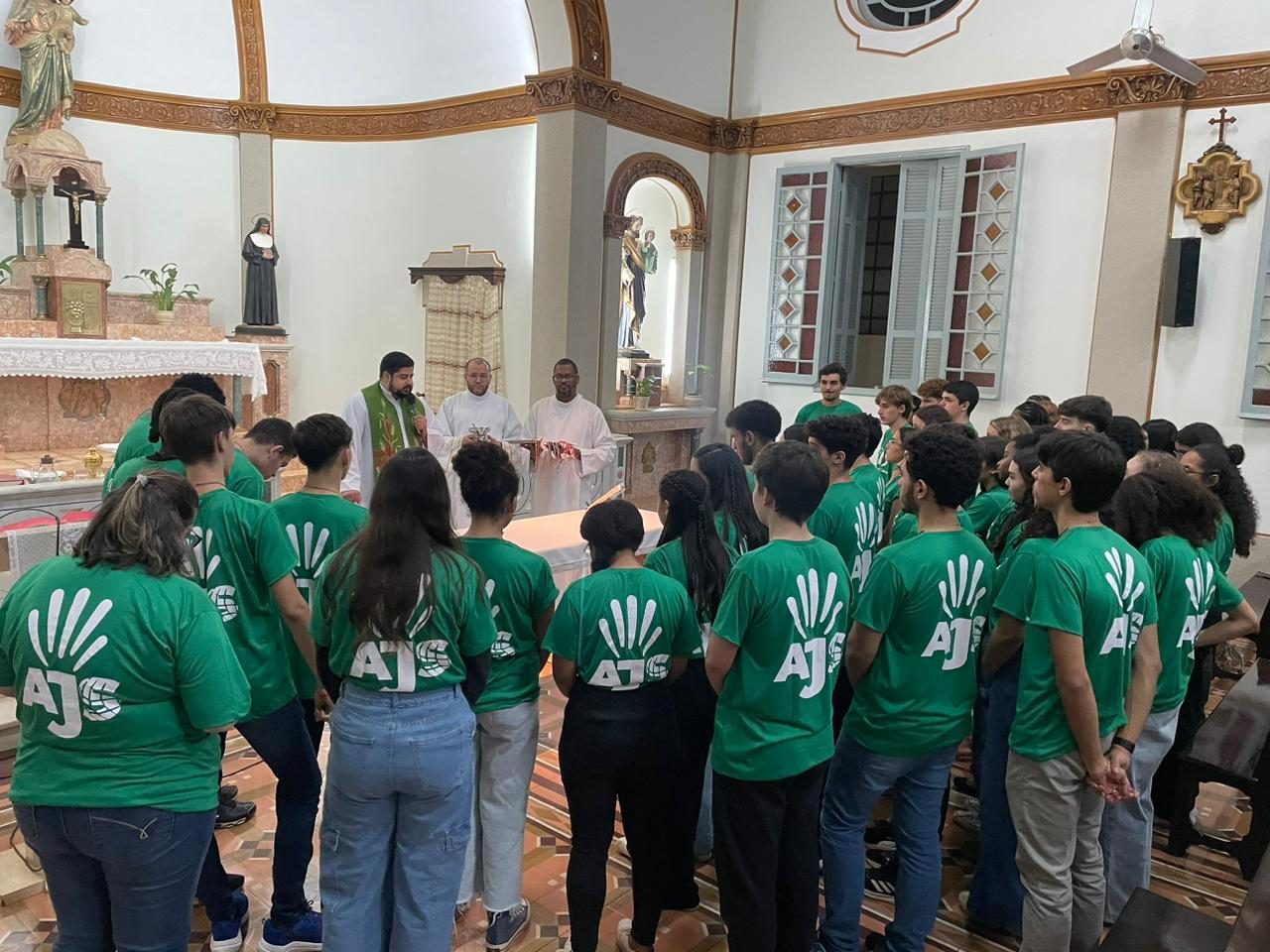 Os missionários, jovens e assessores, participaram do momento em suas comunidades, marcando o fim da preparação e o início da experiência missionária nos próximos dias.