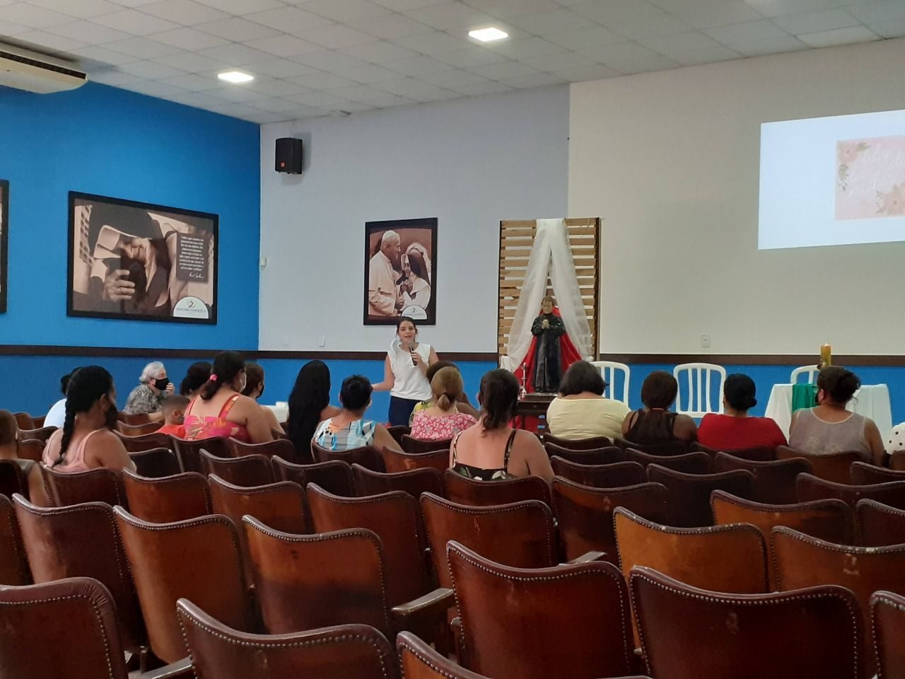 A atividade iniciou às 14h com a acolhida da Irmã Guadalupe Lara Briceno, motivando cada uma a olhar e refletir: “o que é ser mulher?”.