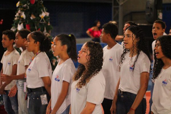 E, para concluir, apresentação do coral com músicas belíssimas, e os educandos de 12 a 16 anos arrasando com suas vozes colossais, músicas natalinas, inundando os corações dos convidados de paz e amor.