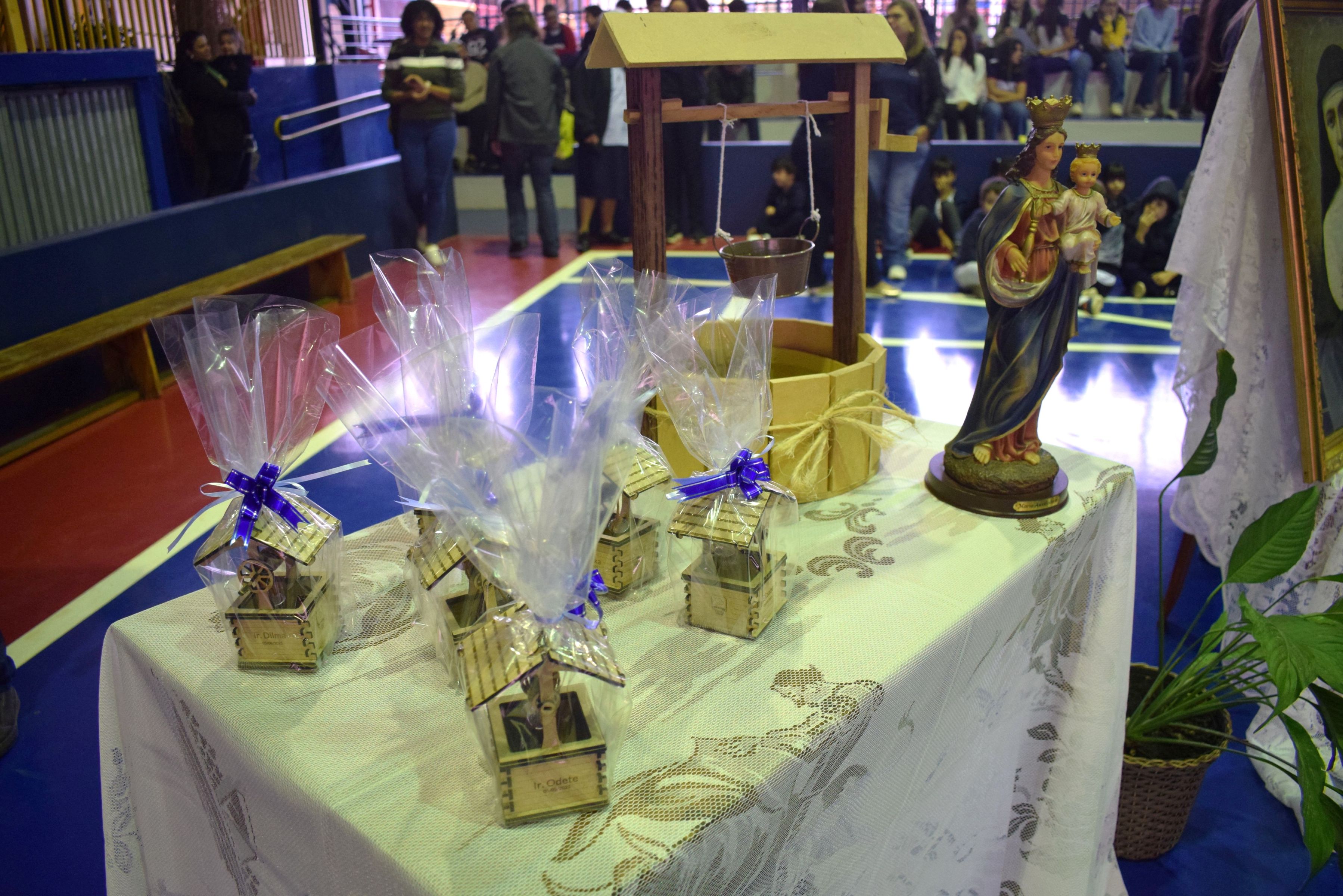 Durante a celebração, as FMA do CENSA receberam uma lembrança especial confeccionada na Máquina de Corte e Gravação a Laser da Sala Maker do colégio. O presente simbolizou a integração entre a tradição centenária das FMA e a inovação tecnológica presente no ambiente educativo.