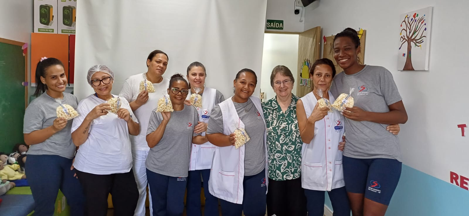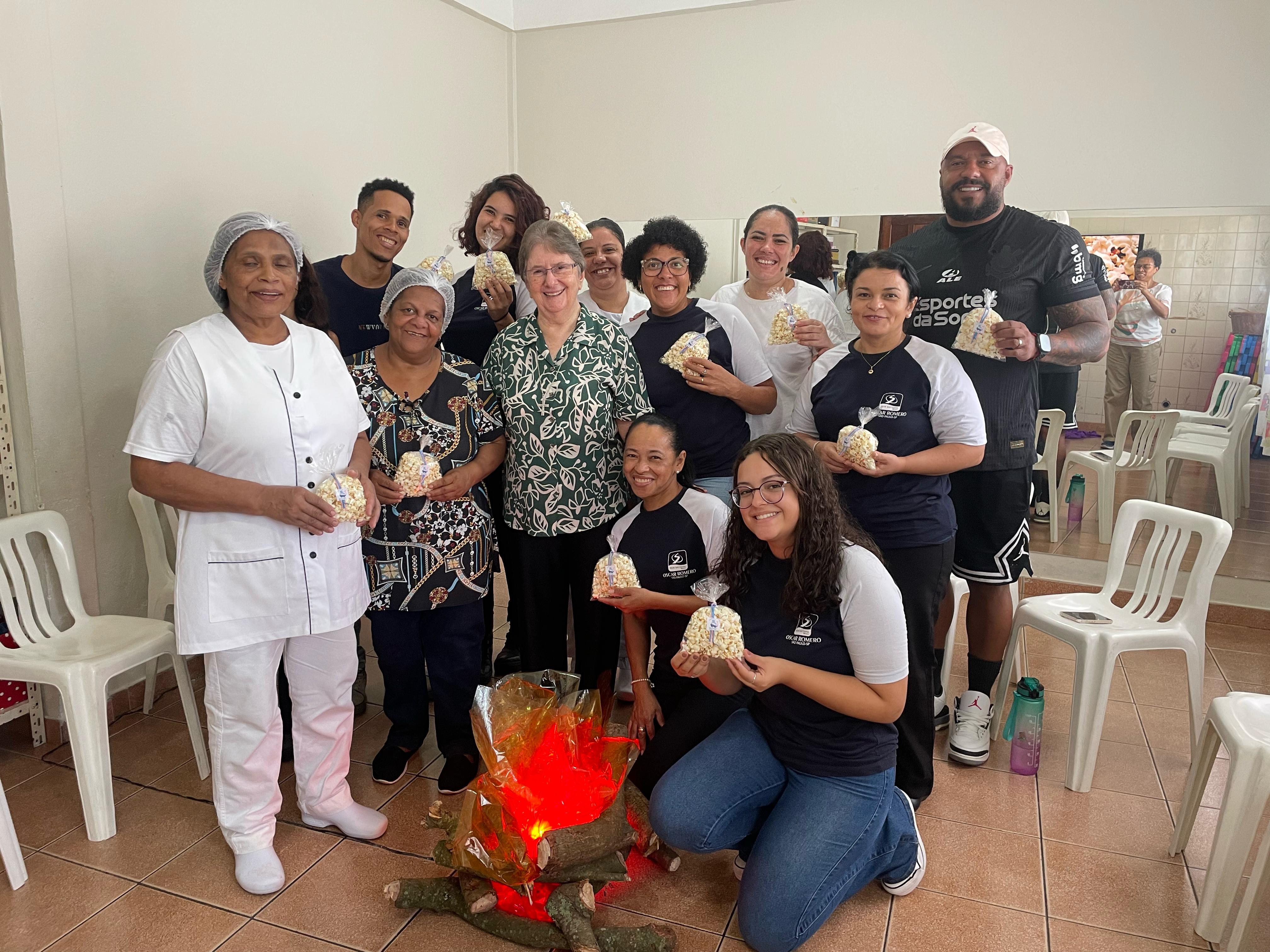 Encerrando o dia, houve um café especial com a coordenação das unidades de atendimento. Foi um momento de alegria, proximidade e troca de experiências sobre os avanços e desafios enfrentados na caminhada da Obra Social. Assim como ocorreu com os educadores, o texto “Milho de Pipoca” foi novamente utilizado como inspiração, mas com um enfoque diferente: além das “lenhas” que alimentam o fogo da missão, os coordenadores foram convidados a refletir sobre as “cinzas” que, em determinados momentos, podem ameaçar apagar esse fogo. A partir dessa reflexão, surgiram propostas para fortalecer ainda mais o trabalho e a unidade entre as equipes.