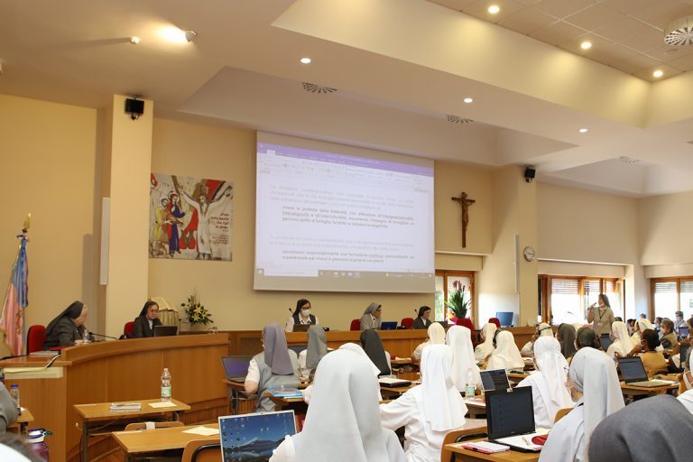 Depois de refazer, no texto bíblico, a dinâmica das ações de Maria e de Jesus, ela convida os capitulares a “ construir comunidades inclusivas, entrelaçadas com relações intergeracionais, interculturais e até intercongregacionais . Essas relações na sua diversidade são uma oportunidade preciosa para o exercício da pedagogia do acolhimento e da escuta , que favorece a valorização do diferente sempre como riqueza ”.