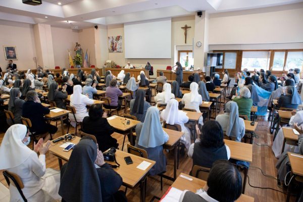 Disse: “Estamos quase no término do nosso Capítulo Geral XXIV, em que refletimos sobre o tema “Fazei tudo o que Ele vos disser” (Jo 2,5). Comunidades geradoras de vida no coração da contemporaneidade. O objetivo do CG XXIV é despertar o frescor originário da fecundidade vocacional do Instituto.