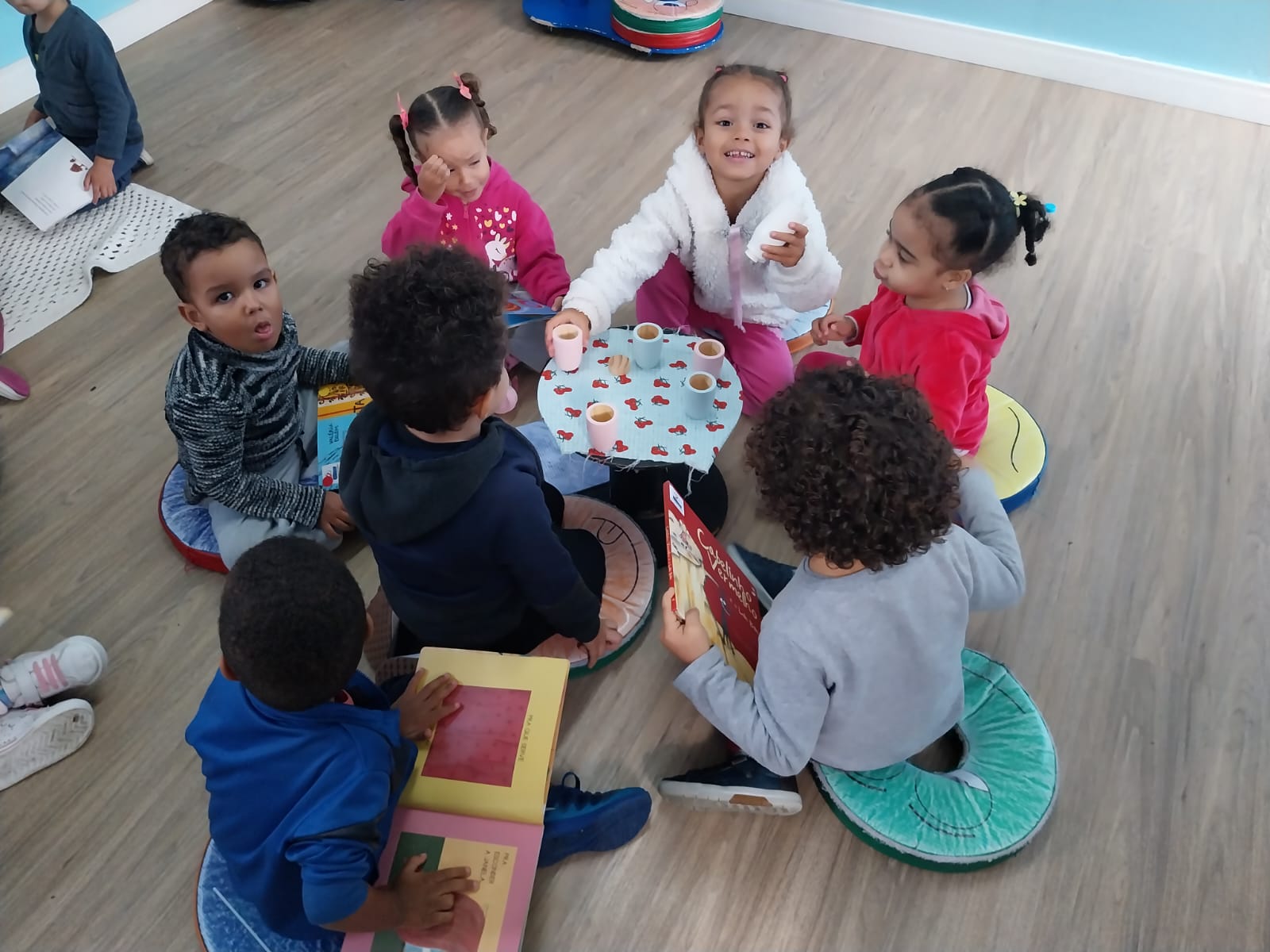 No dia 11 de agosto, as crianças do CEI Pingo de Gente, participaram de uma experiência especial que uniu literatura, afetividade e convivência. A atividade, conduzida pela professora Daniele, proporcionou uma tarde de descobertas por meio do Chá da Tarde Literário, um momento marcado por livros, histórias e encantamento.