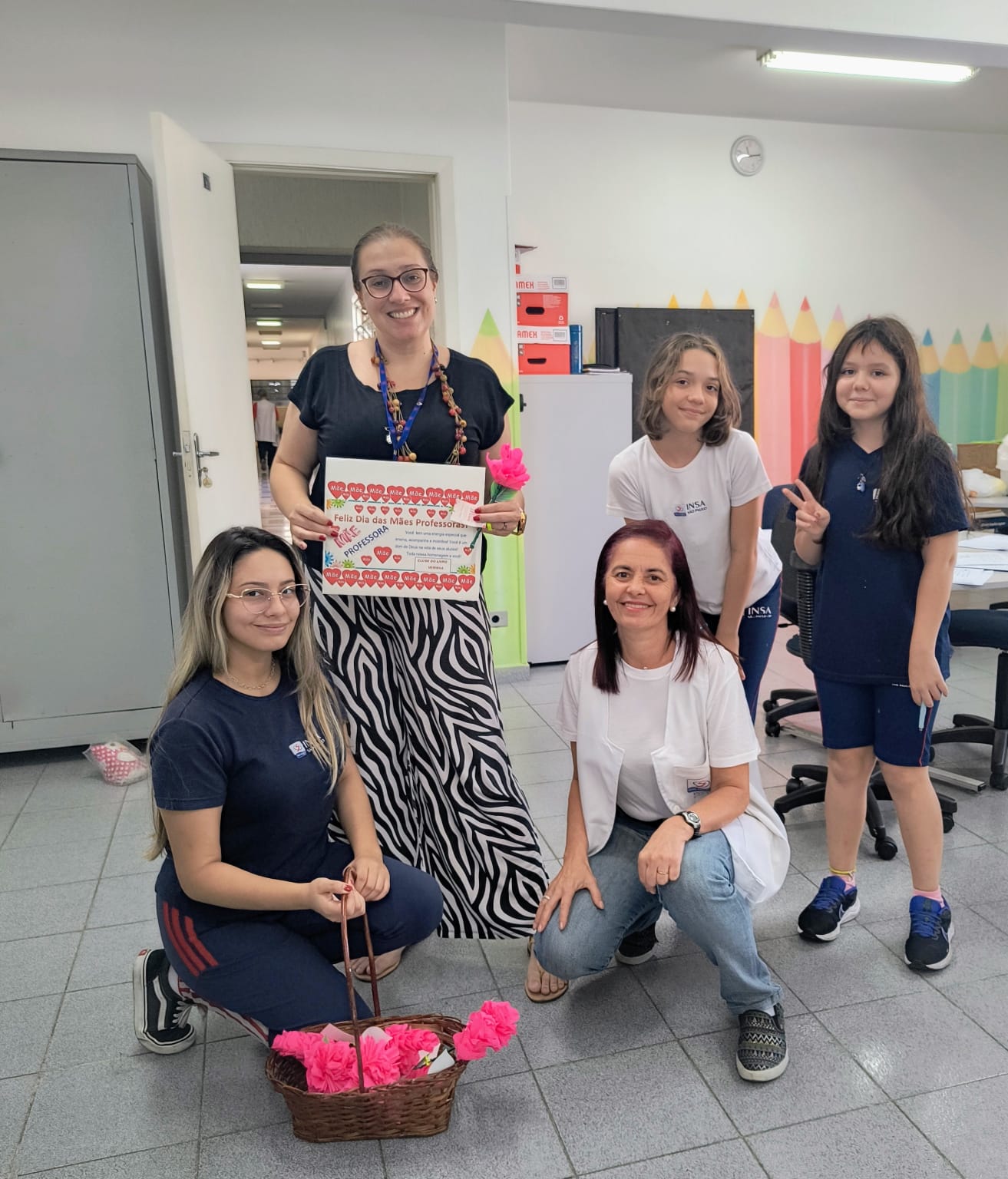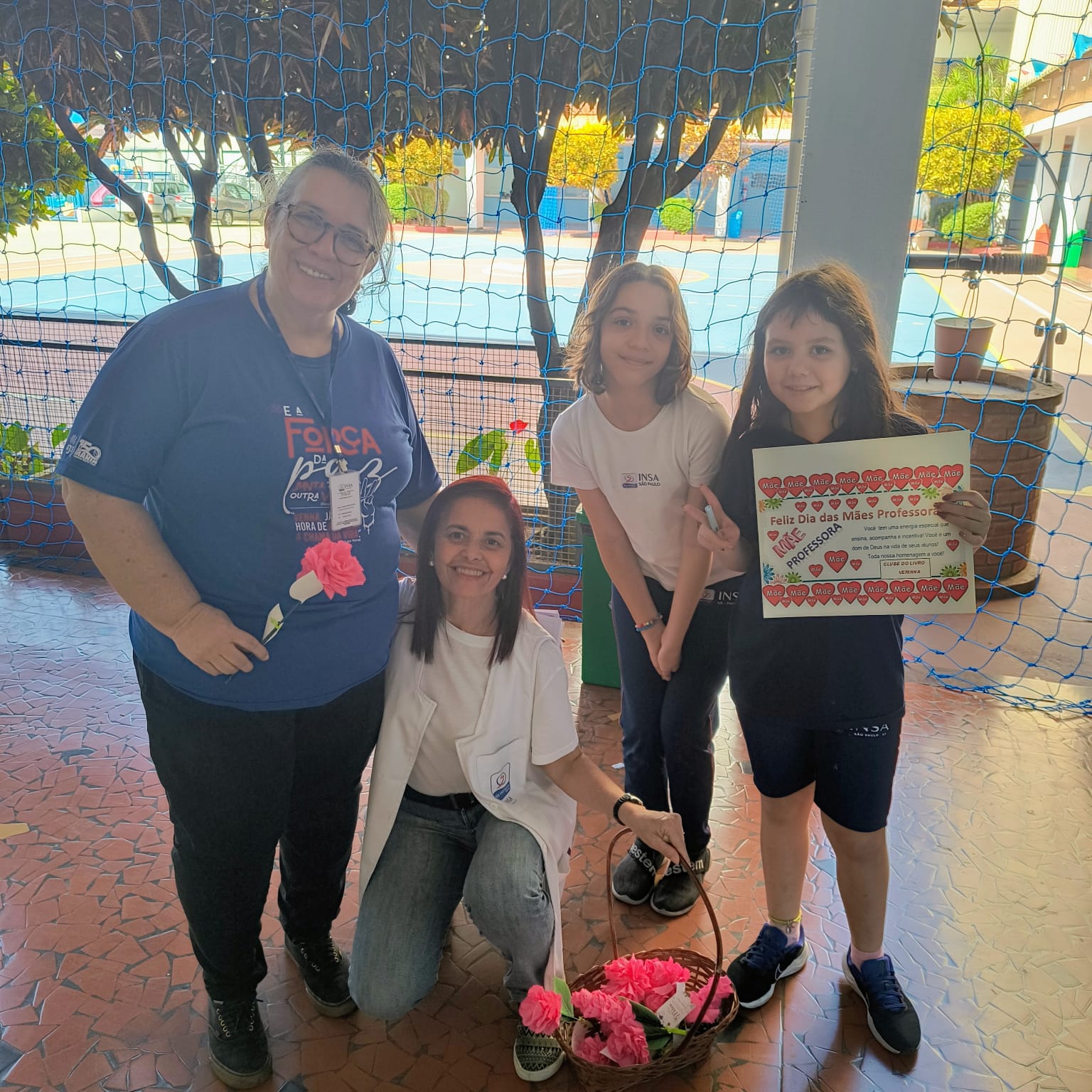 Durante a manhã do evento, os membros do Clube do Livro se posicionaram nos corredores da escola com cestas cheias de rosas. As primeiras a serem presenteadas foram as professoras, seguidas pelas Colaboradoras da limpeza, Secretaria, Cantina, Pastoral, Coordenação Pedagógica e Direção. Cada mulher recebeu uma rosa acompanhada de uma mensagem de agradecimento.