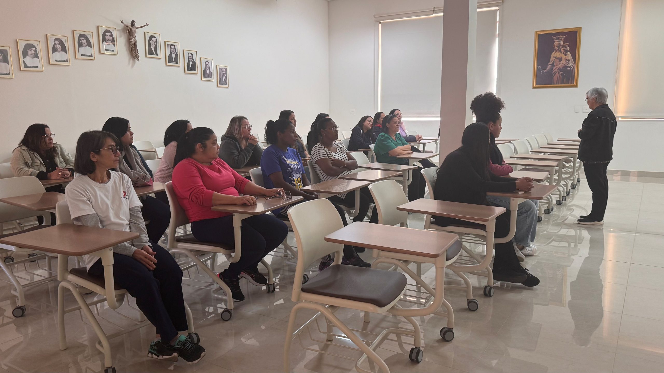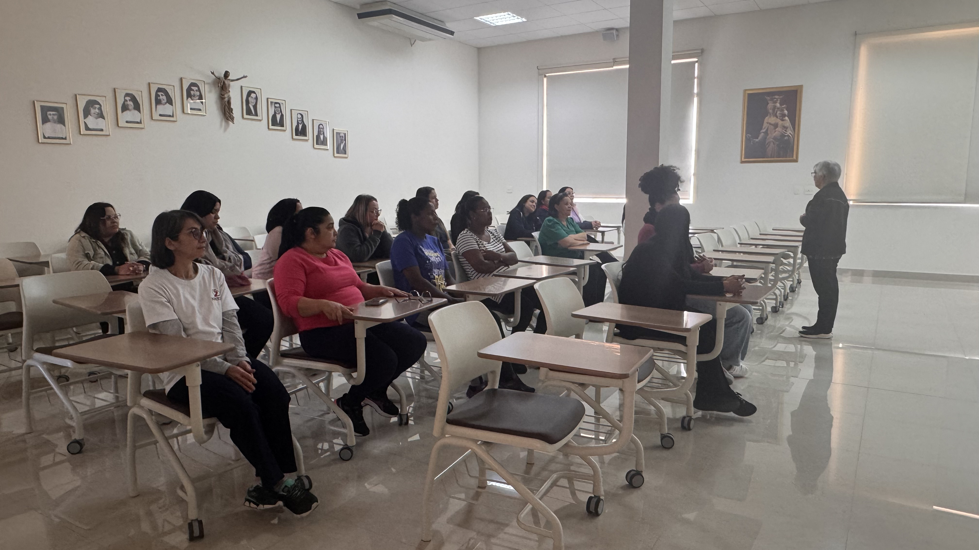 No dia 13 de agosto, cerca de 20 educadores da Inspetoria Nossa Senhora Aparecida (BAP), de São Paulo (SP), participaram de uma Formação em Salesianidade, conduzida por Irmã Helena Gesser, diretora da comunidade da Casa Inspetorial. A atividade teve como tema “Dom Bosco e Madre Mazzarello”, em sintonia com o mês de agosto, período especialmente significativo para a Família Salesiana.