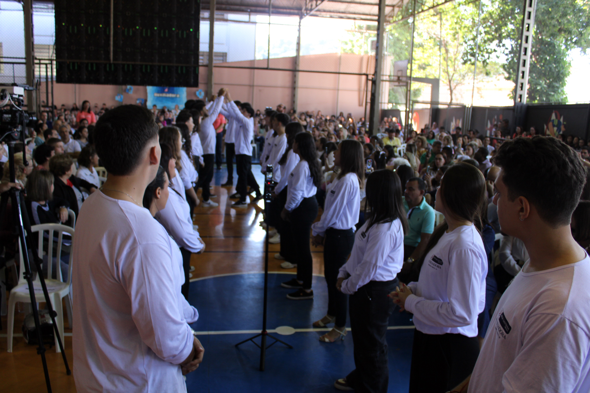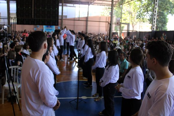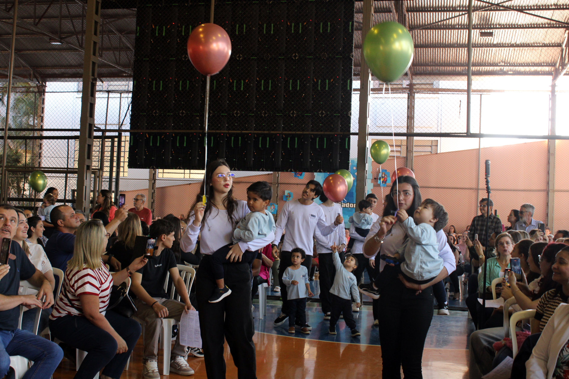 Um dos momentos mais simbólicos foi a entrada conjunta dos formandos da 3ª série, do Ensino Médio, com as crianças do Maternal, representando o encontro entre os primeiros passos e os últimos momentos da vida escolar no colégio. O gesto emocionou a todos os presentes, reforçando o sentimento de pertencimento e continuidade da missão educativa salesiana.