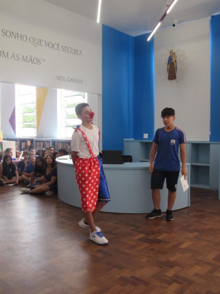 Logo após essas palavras, tomados de emoção, foi a vez de um grupo de estudantes do Ensino Fundamental Anos Finais e Médio apresentarem outra versão do sarau, organizado também pelo professor Pedro. Dessa vez, a performance contou com novos textos e a própria participação do professor. Foi um momento que encantou a todos os presentes.