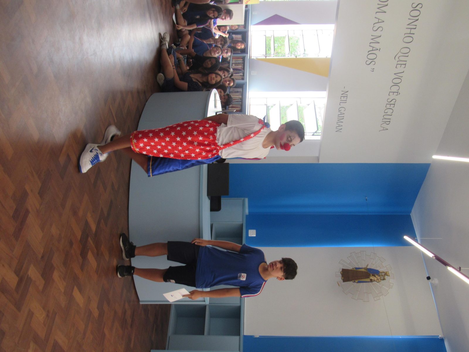 Após o corte da fita, marcando oficialmente a inauguração do espaço, foi realizado um sarau, protagonizado pela turma do 8º Ano e orientado pelo professor de língua portuguesa, Pedro Paulo da Silva de Sá. Os jovens recitaram e encenaram textos redigidos pelo próprio professor. Ao final, uma salva de palmas e parabenizações pela apresentação realizada. Dando prosseguimento à cerimônia, alunos, educadores e demais membros da comunidade educativa que estavam presentes puderam circular pelo espaço e se familiarizar com ele, descobrindo as novidades que estão disponíveis, como as novas salas de estudo, estúdio de gravação e de podcast. Ao longo do dia, as demais turmas do Ensino Fundamental Anos Finais e Médio também puderam visitar a nova Biblioteca Dom Bosco.