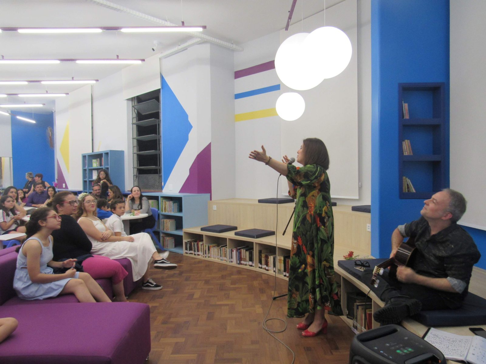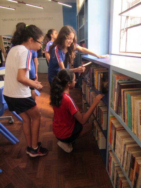 Com o encerramento do show, estudantes, famílias e educadores foram explorar a Biblioteca Dom Bosco, seu acervo, salas de estudo e estúdios de gravação e podcast. Foi um momento de interação e integração entre escola e família, que observavam tudo com muito entusiasmo. “Eu estava esperando muito a abertura da biblioteca, eu estava muito ansiosa para vir ler aqui”, comenta a aluna Alicia, do 7º Ano do Ensino Fundamental.