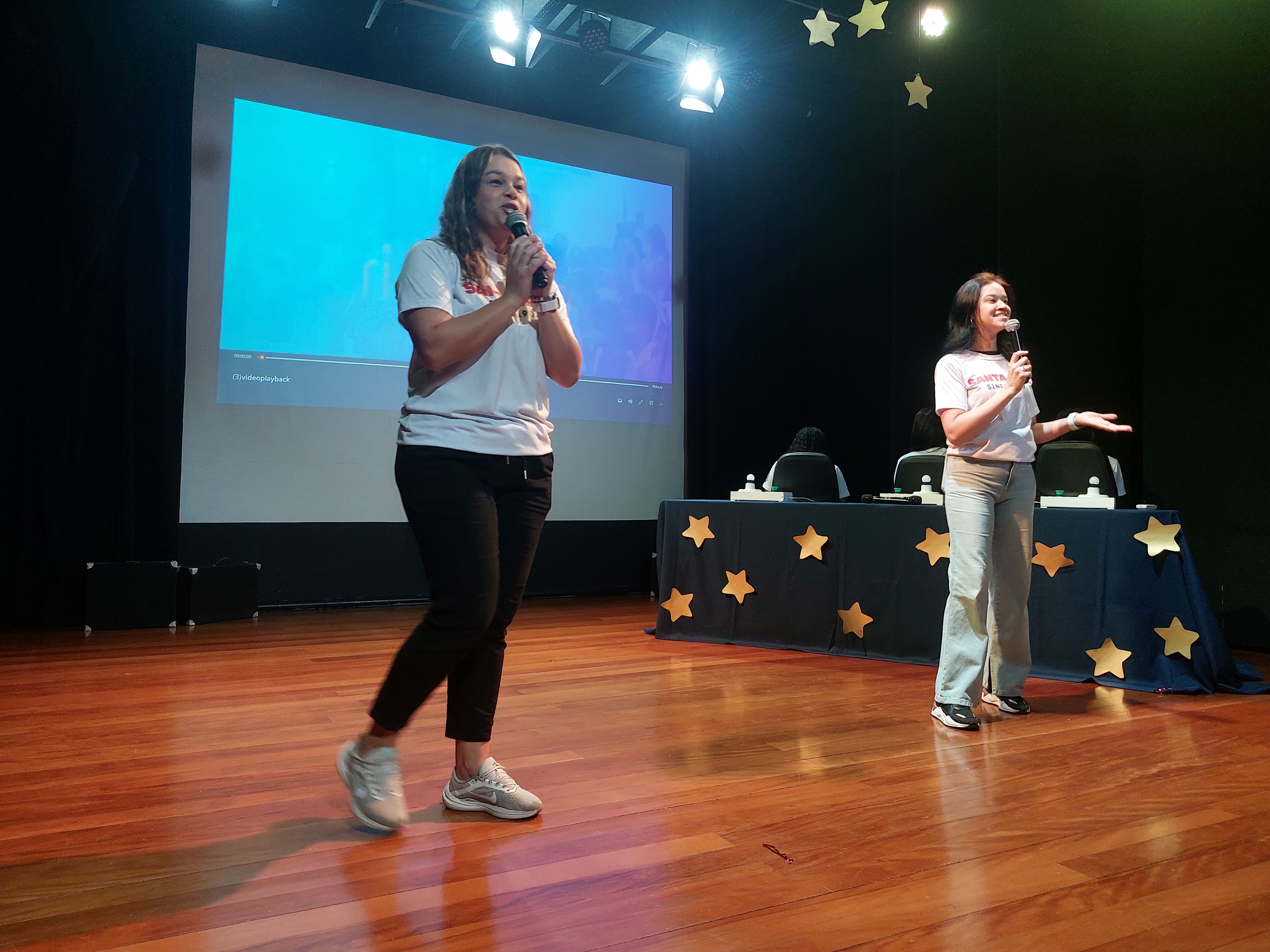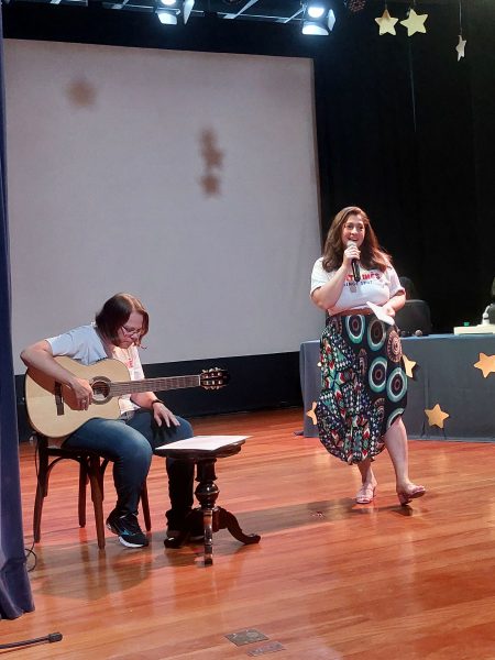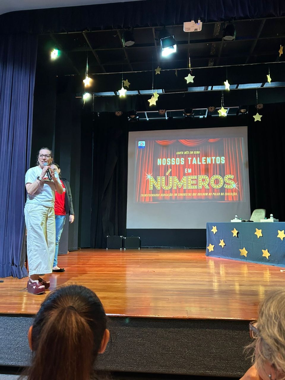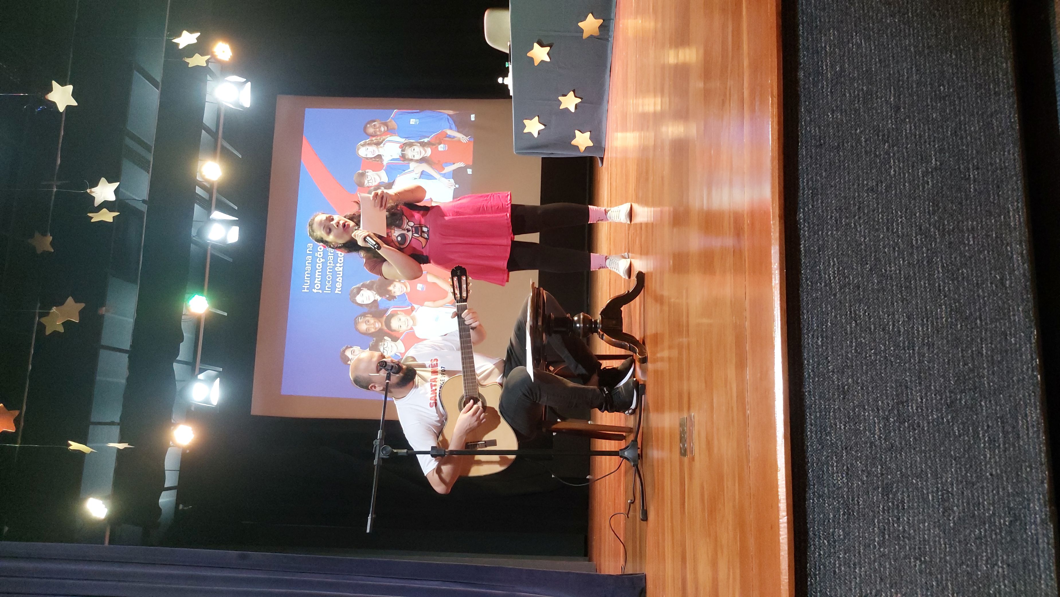Depois de conhecer os talentos no palco, foi o momento de conhecer os resultados do talento do time na educação. Com a apresentação “Santa Inês em Cena: Nosso Talento em Números”, a Diretora Pedagógica, Fernanda, e a Supervisora Administrativa, Tacilla, apresentaram os resultados da pesquisa institucional realizada no primeiro semestre deste ano com os estudantes do Colégio e suas famílias. Foram ressaltados os pontos fortes e, em disparada, o acolhimento foi o atributo mais citado entre os respondentes. Isso trouxe um sentimento de muito orgulho para cada pessoa ali presente. Outros pontos fortes também destacados foram a qualidade do ensino, a equipe docente e a infraestrutura.