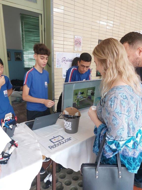 As turmas do Ensino Fundamental Anos Finais também puderam apresentar o trabalho que vem sendo desenvolvido nas aulas de Robótica, em parceria com a empresa Roboticar. Além da criação de histórias animadas envolvendo o tema da sustentabilidade, os jovens também fizeram uma demonstração de uma lixeira criada por eles e que funciona à base de um sensor. “Eu achei interessante, a gente nunca teve a oportunidade de mexer com Robótica”, relata a estudante Emily, do 8º Ano. “Eu gostei de explicar para as famílias e para as pessoas que nunca tiveram contato com isso”.