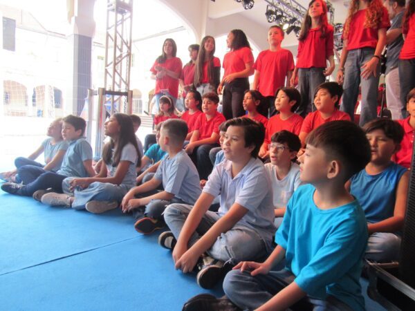 A apresentação do show interativo com a participação dos alunos e a exposição dos trabalhos foi apenas a culminância de um projeto que foi trabalhado com as crianças ao longo dos meses. O pontapé inicial aconteceu com atividades embasadas no livro “O que nós somos juntos”, desenvolvido pela produtora Música em Família. Uma delas, muito significativa nesse processo, foram as salas de imersão: espaços do Colégio devidamente ambientados para que os alunos pudessem se sentir não apenas próximos ao mar, mas dentro dele. Isso contribuiu para o desenvolvimento do repertório cultural de cada criança, bem como seu protagonismo.