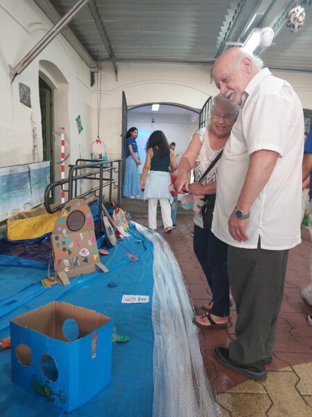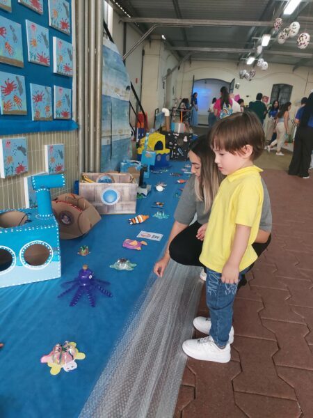 Ao final de cada performance, as famílias puderam conferir um pouco do trabalho realizado pelas turmas ao longo dos últimos meses. Um dos pátios do Colégio de Santa Inês se transformou em uma verdadeira “praia” com a exposição de trabalhos como quadros, esculturas e diversas representações de elementos que encontramos na praia, desde os “carrinhos” dos vendedores ambulantes até os animais que são encontrados na região litorânea. É importante ressaltar que o material principal para a reprodução das peças expostas foram materiais recicláveis, como garrafas PET e caixas de papelão, reforçando o compromisso do Colégio com a sustentabilidade e o cuidado com a nossa Casa Comum.
