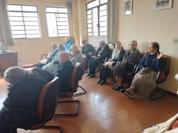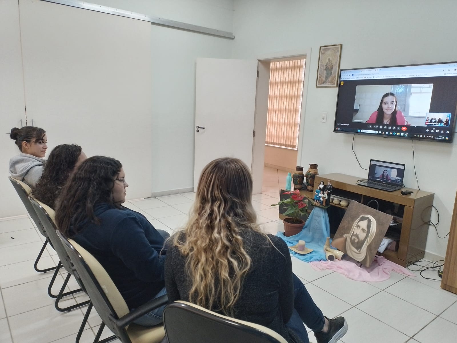 Momento forte para todas as participantes foi o encontro com as FMA da comunidade Santa Teresinha, que acolhe Irmãs idosas e para tratamento de saúde. Na oportunidade, algumas delas partilharam suas experiências e seu caminho vocacional. As jovens ficaram muito agradecidas por verem o Carisma Salesiano concretizado na vida destas Irmãs. A aspirante Vitória que atualmente se encontra em Recife (PE) vivendo a etapa do Aspirantado (2º ano), também teve uma participação on-line, por meio da qual foi possível apresentar as etapas formativas do Aspirantado e Postulado. O encontro terminou com um momento de Adoração a Jesus presente na Eucaristia.