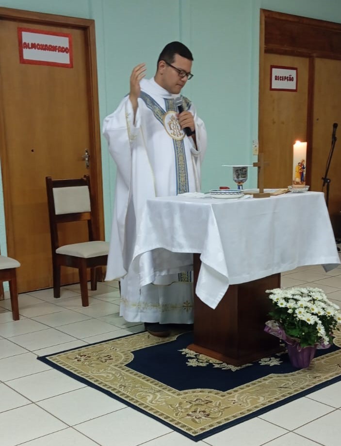 O celebrante foi o Salesiano, Padre Diego Silva, que pertence à comunidade salesiana do Instituto Assistencial Dom Bosco.
