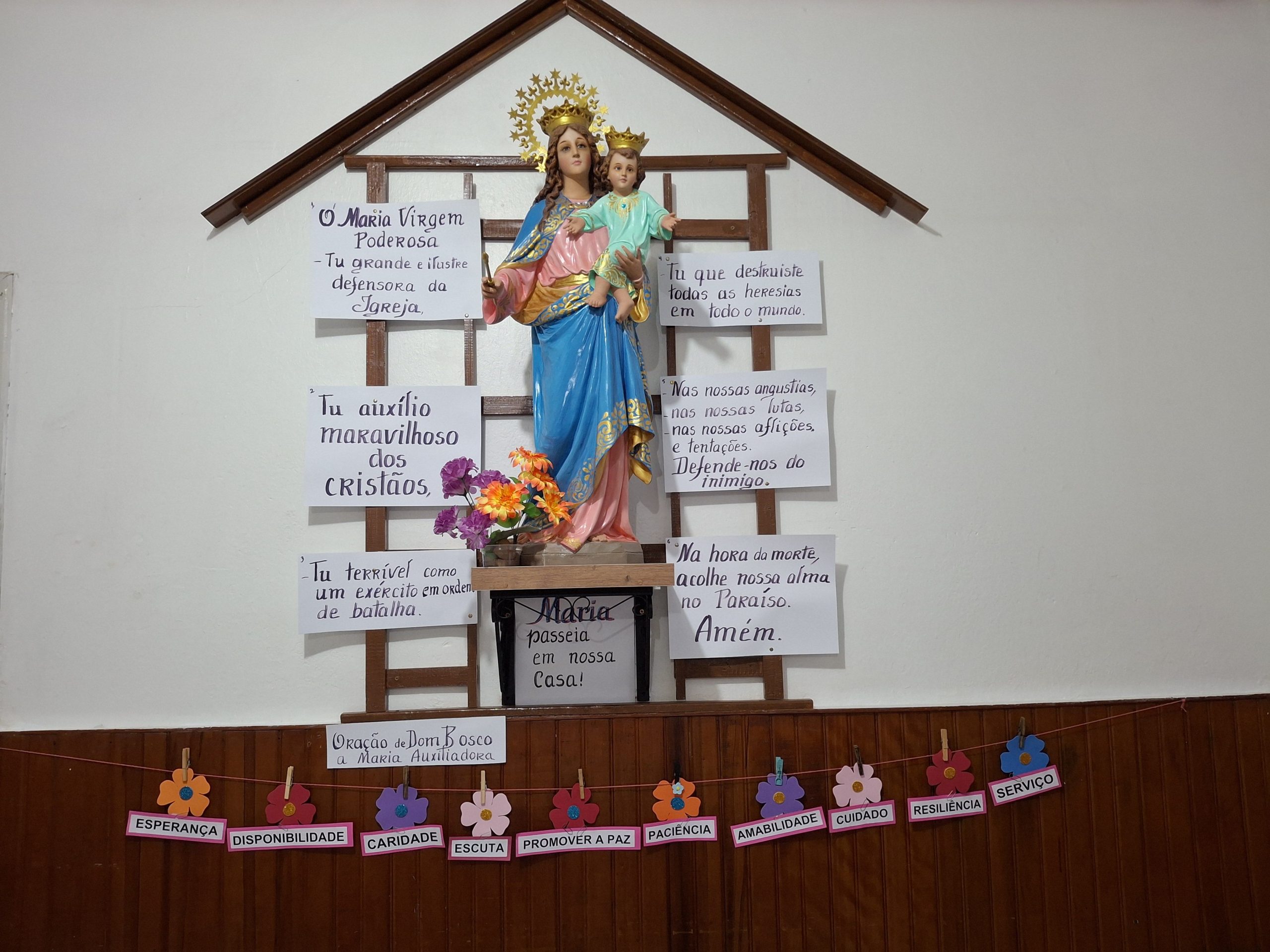 Cada turma aprendeu um canto dedicado à Nossa Senhora, elaborou um cartaz retratando um dos seus muitos títulos e compôs uma oração à Nossa Senhora Auxiliadora pela Casa Comum. A Novena a Nossa Senhora foi uma experiência marcante e ajudou a intensificar o compromisso de vivenciar uma “flor” diária, que representa – na tradição salesiana – o empenho de viver uma boa atitude, um bom comportamento. Também os ensaios e gravação da música e coreografia para a Cantata da Inspetoria Nossa Senhora Aparecida (BAP) possibilitou conhecer e amar mais Nossa Senhora.