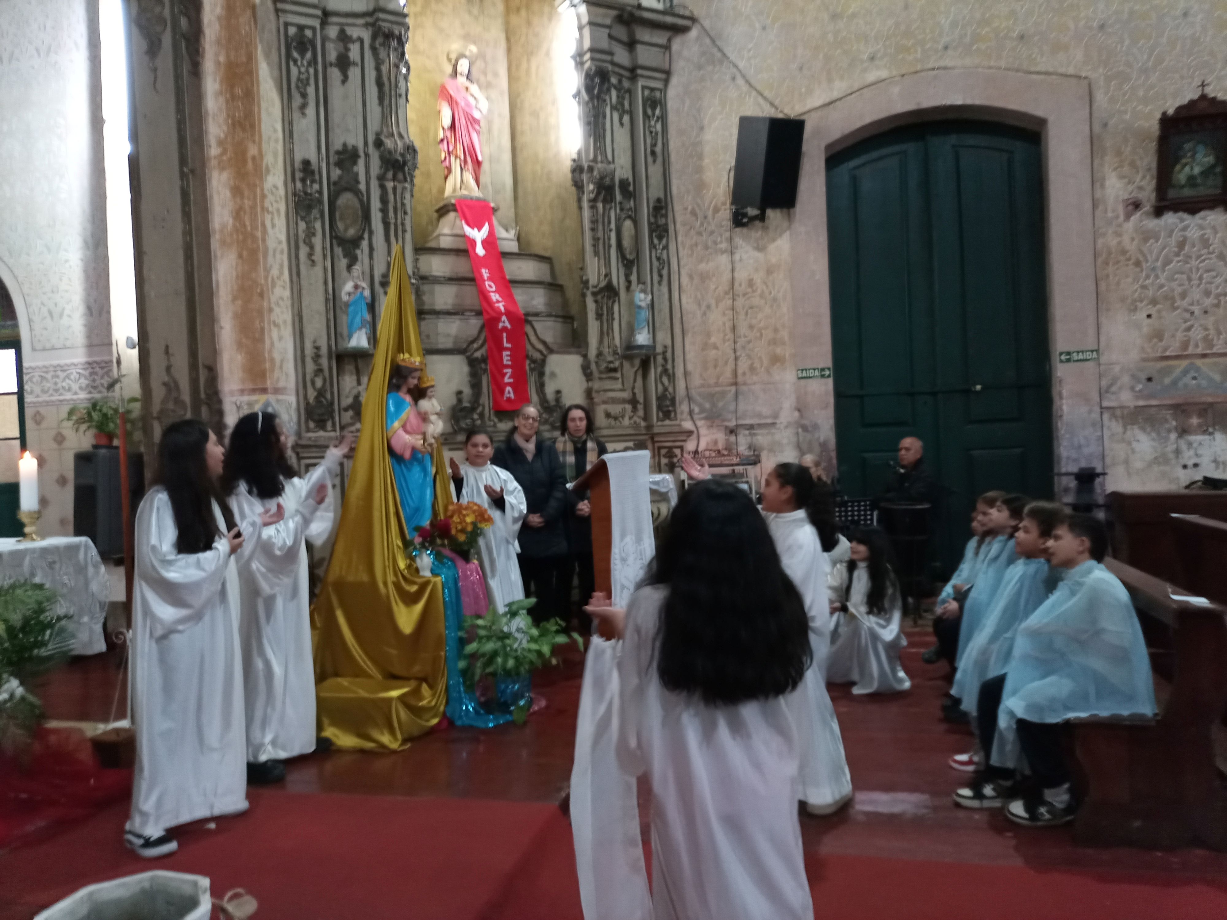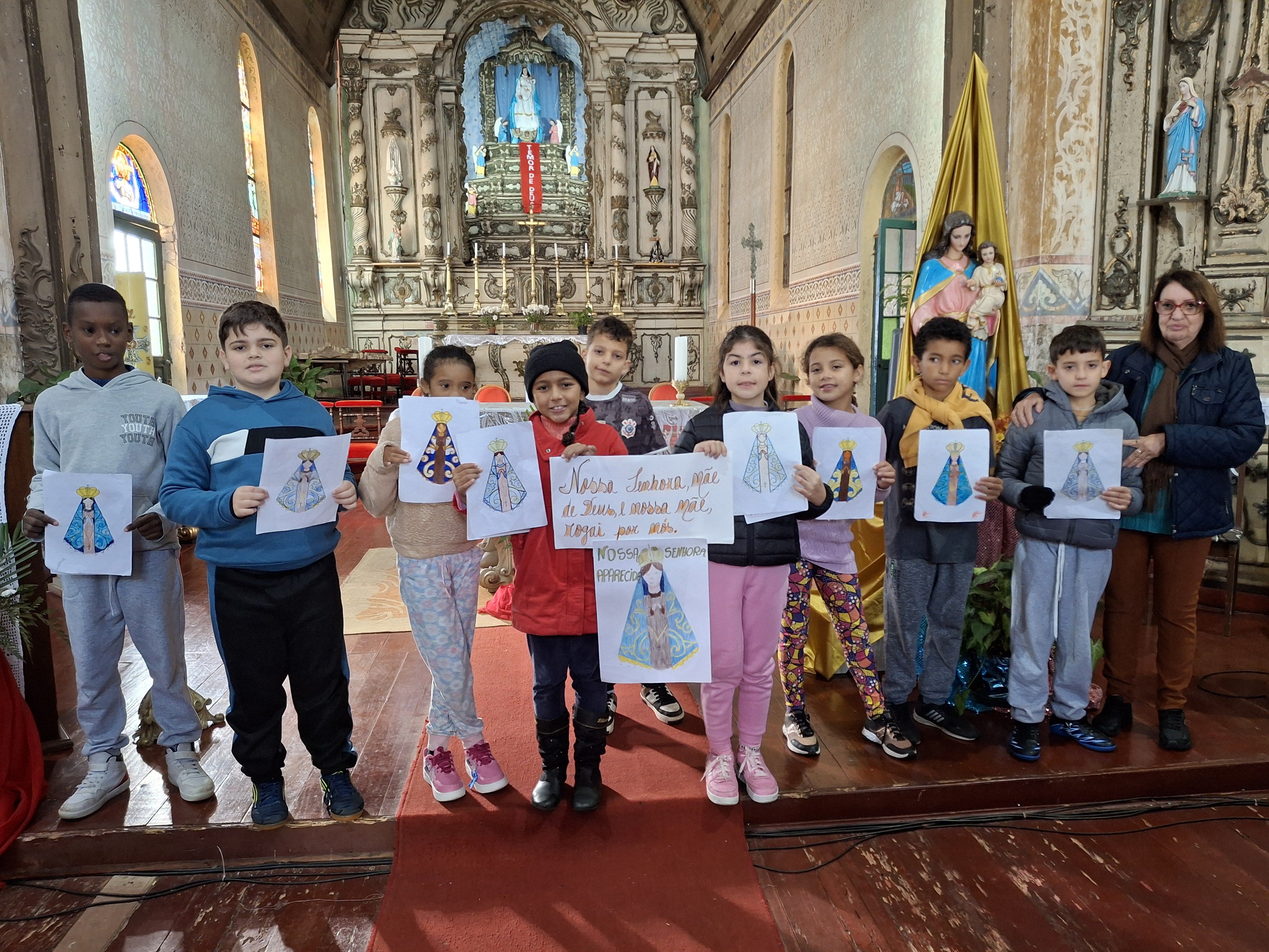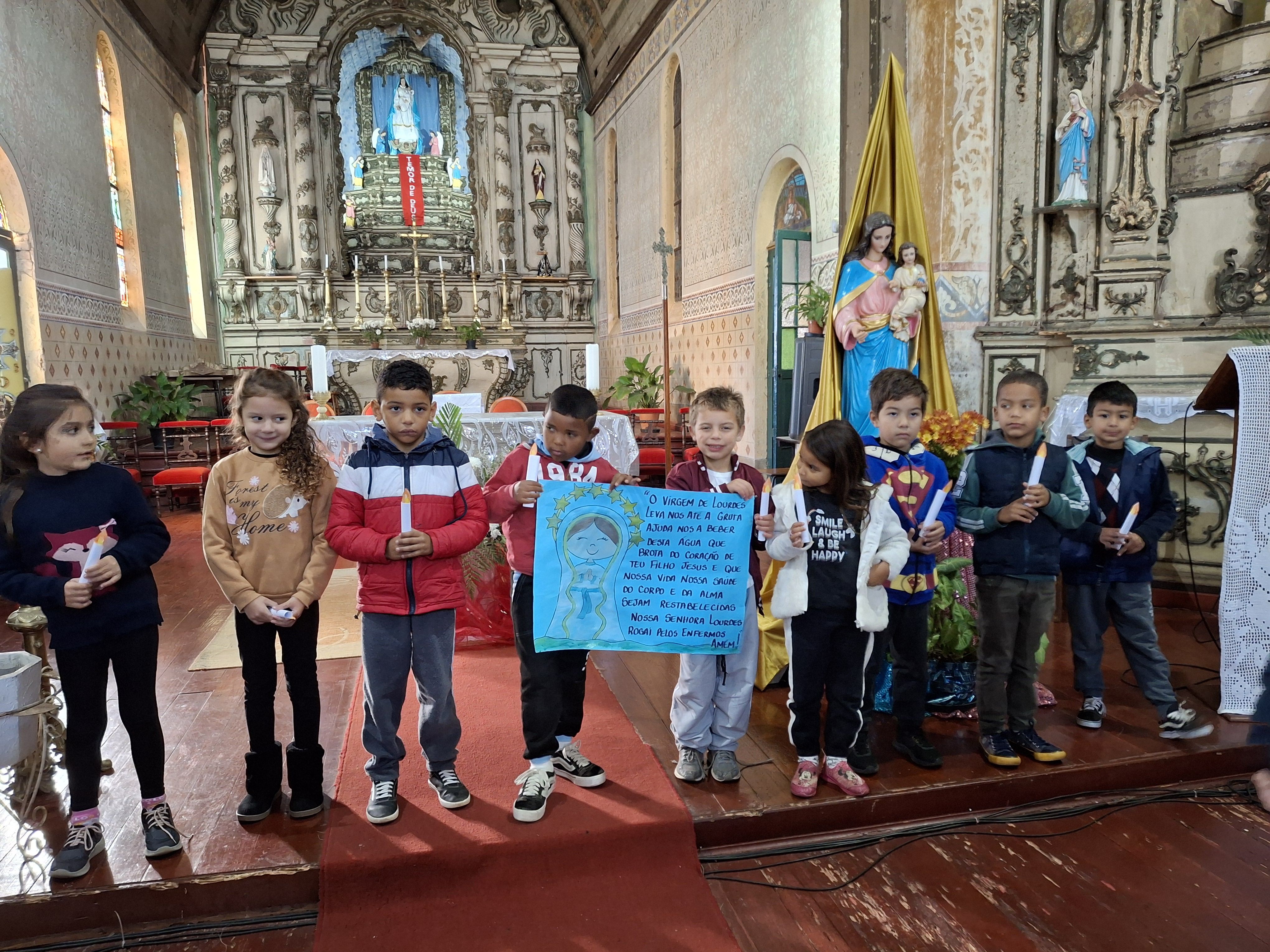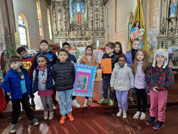 Já no dia 30 de maio, como culminância do mês, as turmas do turno da manhã realizaram o momento Mariano na Igreja Nossa Senhora do Rosário, a partir das orações, cantos e títulos escolhidos e preparados por cada turma e, por fim, as educadoras também fizeram o bonito gesto de coroar Nossa Senhora.