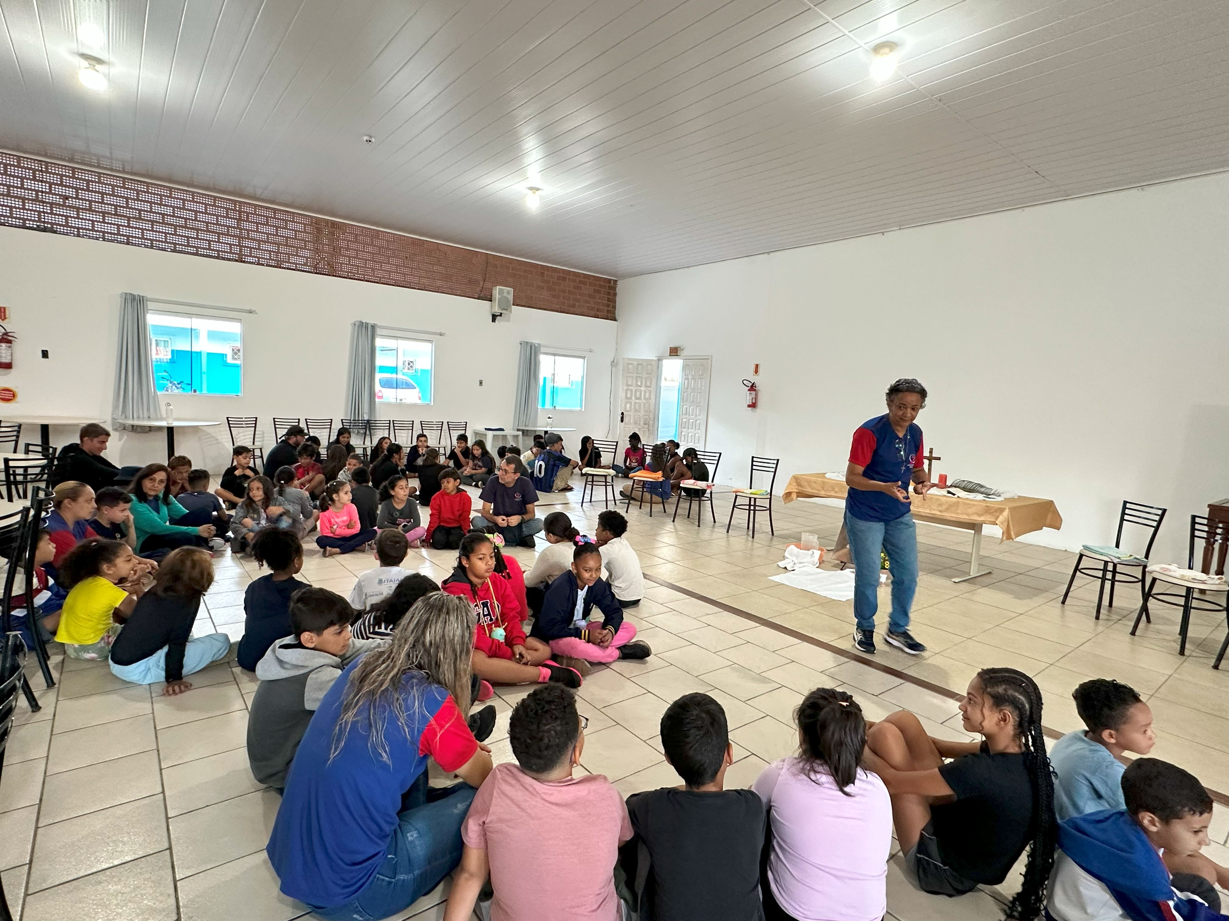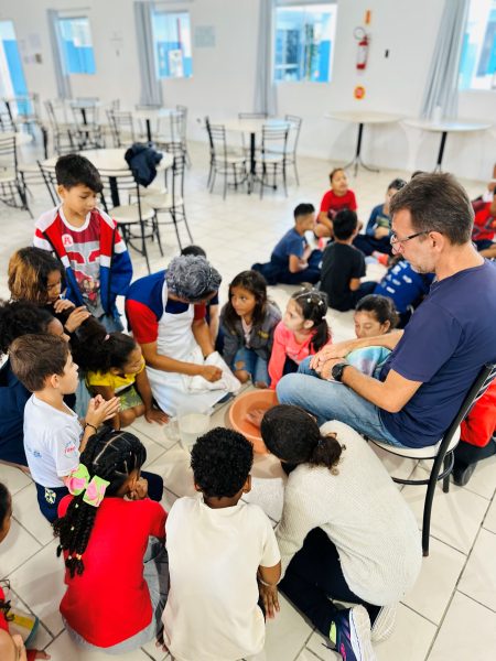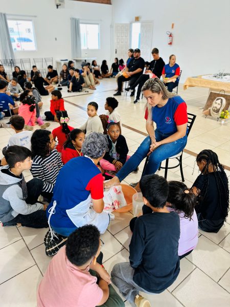 A escolha pela equipe deu um tom ainda mais emocionante ao momento celebrativo, despertando sorrisos e bons sentimentos nas crianças e adolescentes que frequentam a Obra. Eles acompanharam tudo com grande atenção e sintonia.