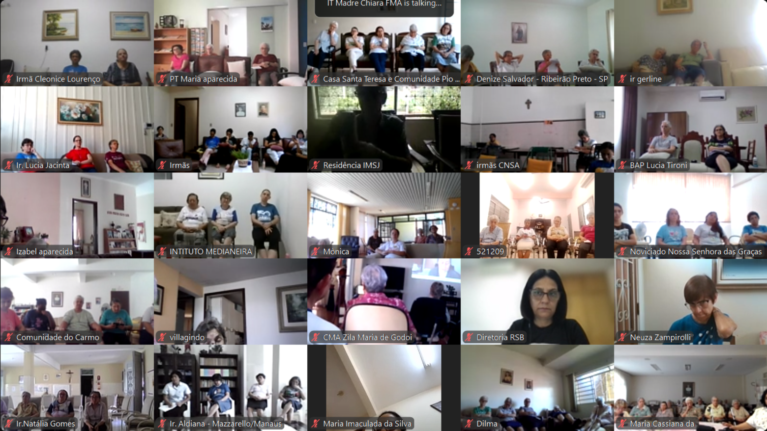 Em nome de todas as FMA do Brasil, Irmã Narcisa Berti, da Comunidade Maria Auxiliadora de Lins (SP), agradeceu a Madre Chiara ressaltando o seu testemunho de ser presença e de estar presente a esta iniciativa da CIB. Convidou todas as Irmãs a expressarem um grande obrigada à Madre, porque no próximo mês de abril vai ser celebrada, em nível de Instituto, a Festa da Gratidão. Segundo Irmã Narcisa, este encontro online com a Madre é a grande oportunidade «para dizermos juntas: obrigada por tudo».