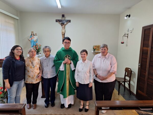 De 2 a 5 de setembro, a comunidade educativo-pastoral do Recanto da Cruz Grande, em Itapevi (SP), acolheu a visita da Conselheira Geral, Irmã Paola Battagliola, que cumpre uma agenda de visitas à Inspetoria Nossa Senhora Aparecida (BAP). Irmã Paola chegou no dia 2 de setembro, trazida pelas Irmãs da Casa inspetorial Helena Gesser e Gisele Rodrigues Coelho, acompanhadas por Irmã Eliane Petri, docente da Pontifícia Faculdade de Ciências da Educação Auxilium, de Roma, também em visita ao Brasil. A Conselheira foi acolhida com faixas e um canto de boas-vindas por funcionários, educadores, educandos e pelas Filhas de Maria Auxiliadora (FMA) que vivem naquela comunidade. O primeiro espaço a ser visitado foi a Capela, onde as Irmãs, acompanhadas pelas Coordenadoras da Administração e do Projeto, dirigiram-se para colocar sob a proteção de Nossa Senhora Auxiliadora esta visita. Irmã Maria José, diretora da Comunidade religiosa, saudou a Visitadora e, juntas, fizeram um breve momento de oração. Na parte da tarde, Irmã Paola, acompanhada pelas Irmãs Maria José e Metka, foi até a Cúria diocesana, onde teve um encontro com o Bispo, Dom Frei João Bosco Barbosa de Souza, da Ordem dos Frades Menores (OFM).