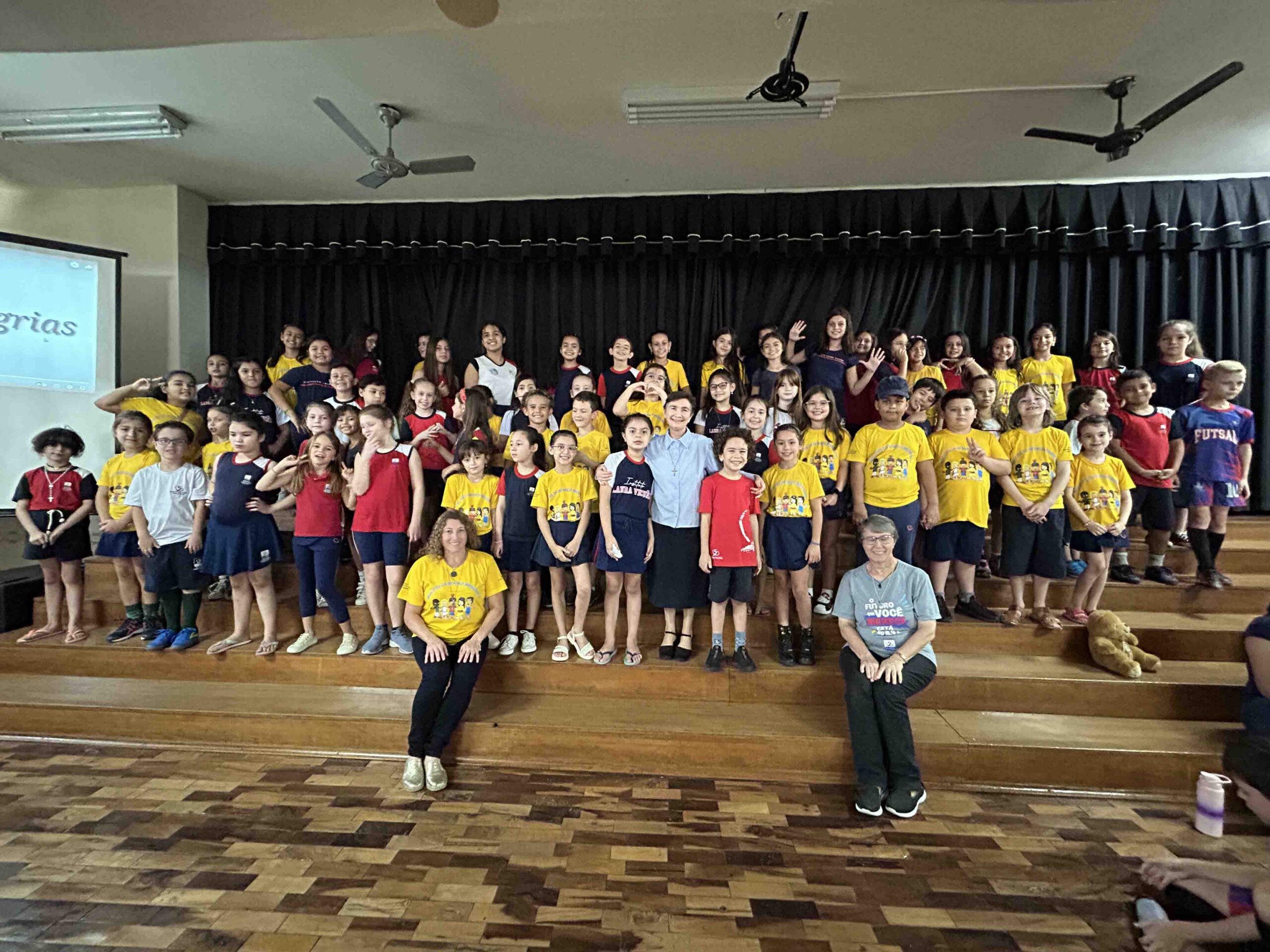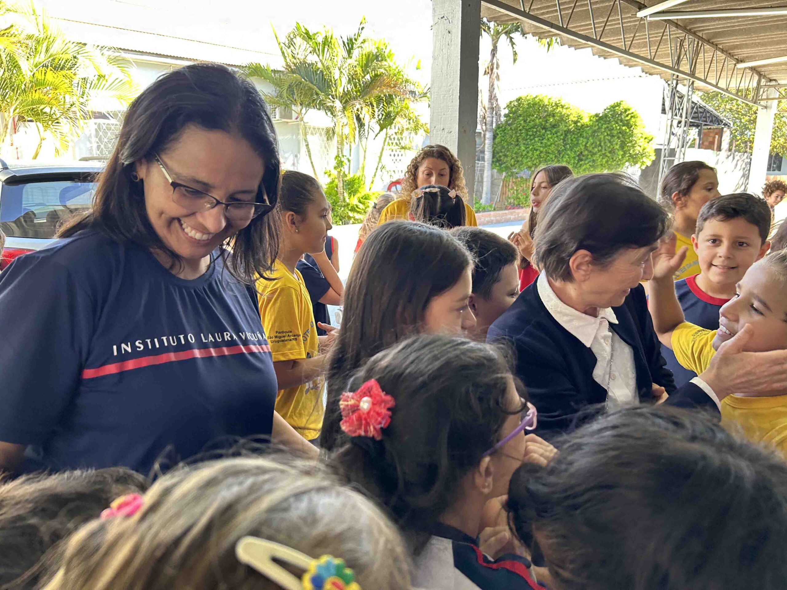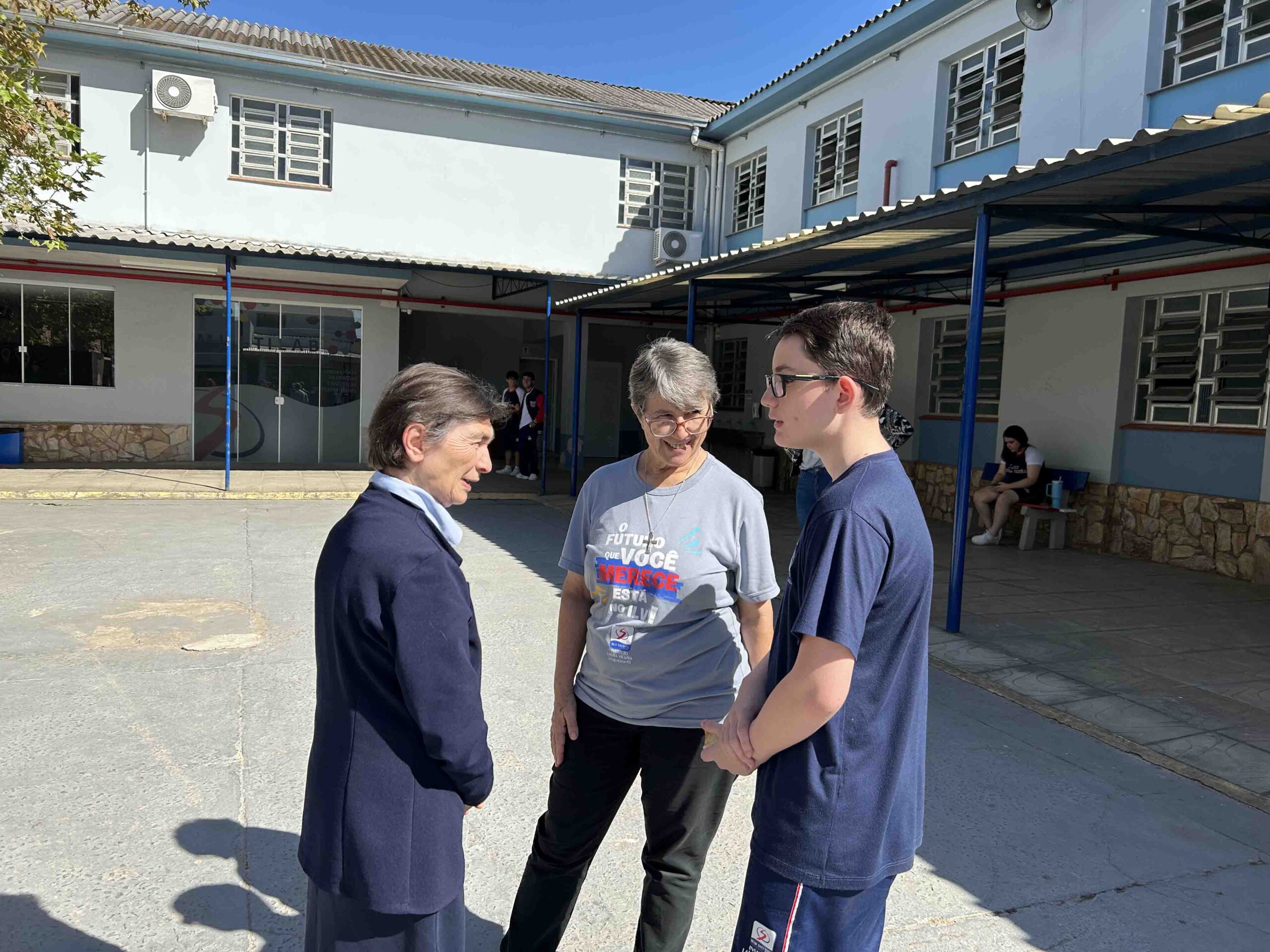 No dia 26 de março, o Instituto Laura Vicuña (ILV), de Uruguaiana (RS), instituição de ensino pertencente à Inspetoria Nossa Senhora Aparecida (BAP), foi agraciado pela honrosa presença da Irmã Paola Battagliola, Conselheira Geral do Instituto das Filhas de Maria Auxiliadora (FMA). Com uma alegre e carinhosa recepção realizada no pátio da escola, as crianças da Infância Missionária (IAM) cantaram a música “Seja bem-vinda com o amor de Jesus” e o hino da IAM para bem celebrar esse momento.