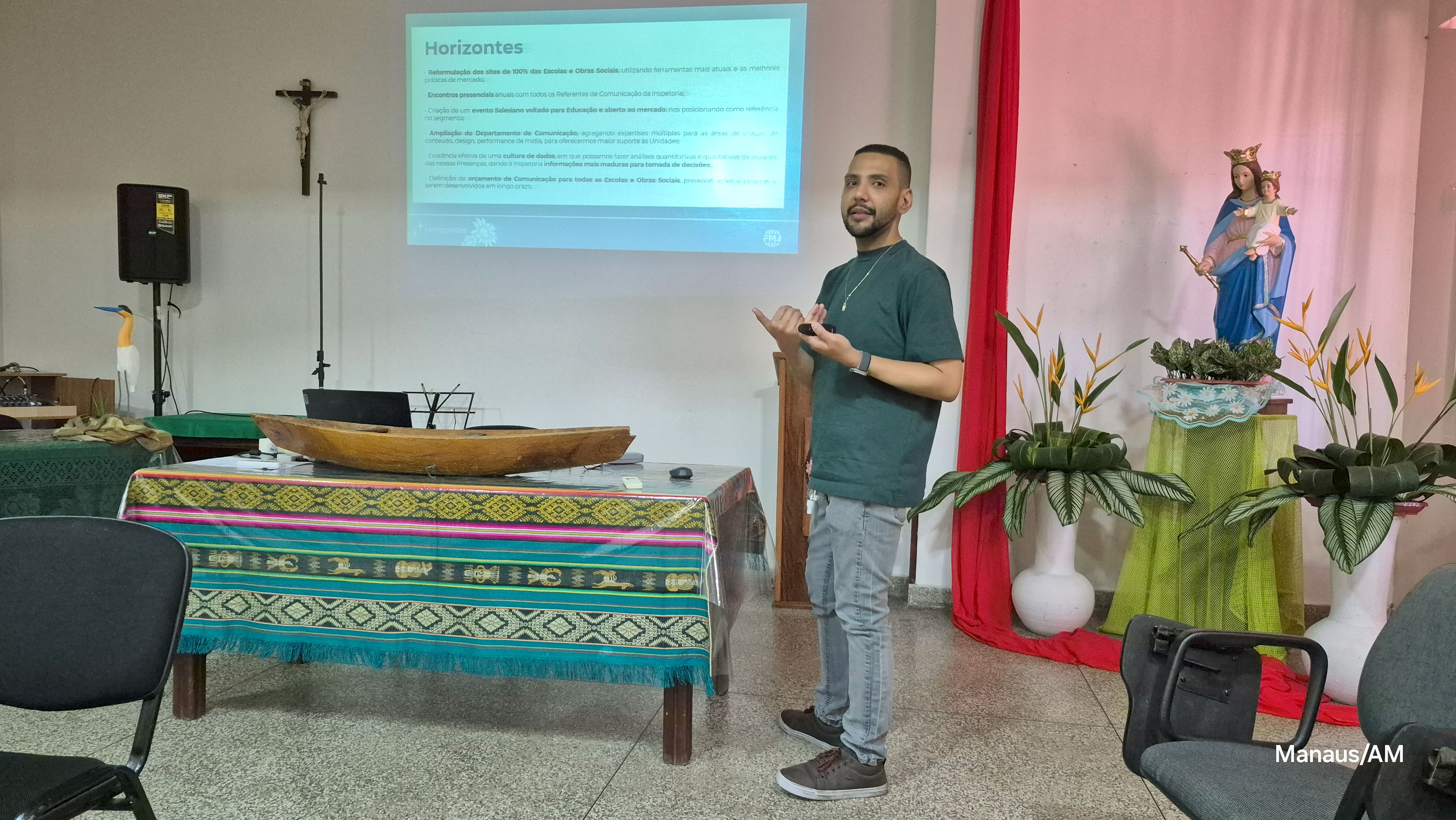 Na manhã do dia 25, os/as Coordenadores/as de Comunicação da CIB participaram de uma peregrinação, juntamente com os Delegados inspetoriais de Comunicação dos Salesianos e alguns jovens de Manaus e de Belém do Pará. A peregrinação teve início no Santuário São José Operário, e envolveu os participantes com orações, cantos, reflexões, culminando na Catedral de Manaus, onde puderam passar pela Porta Santa, segundo o que prescreve o Jubileu da Esperança.