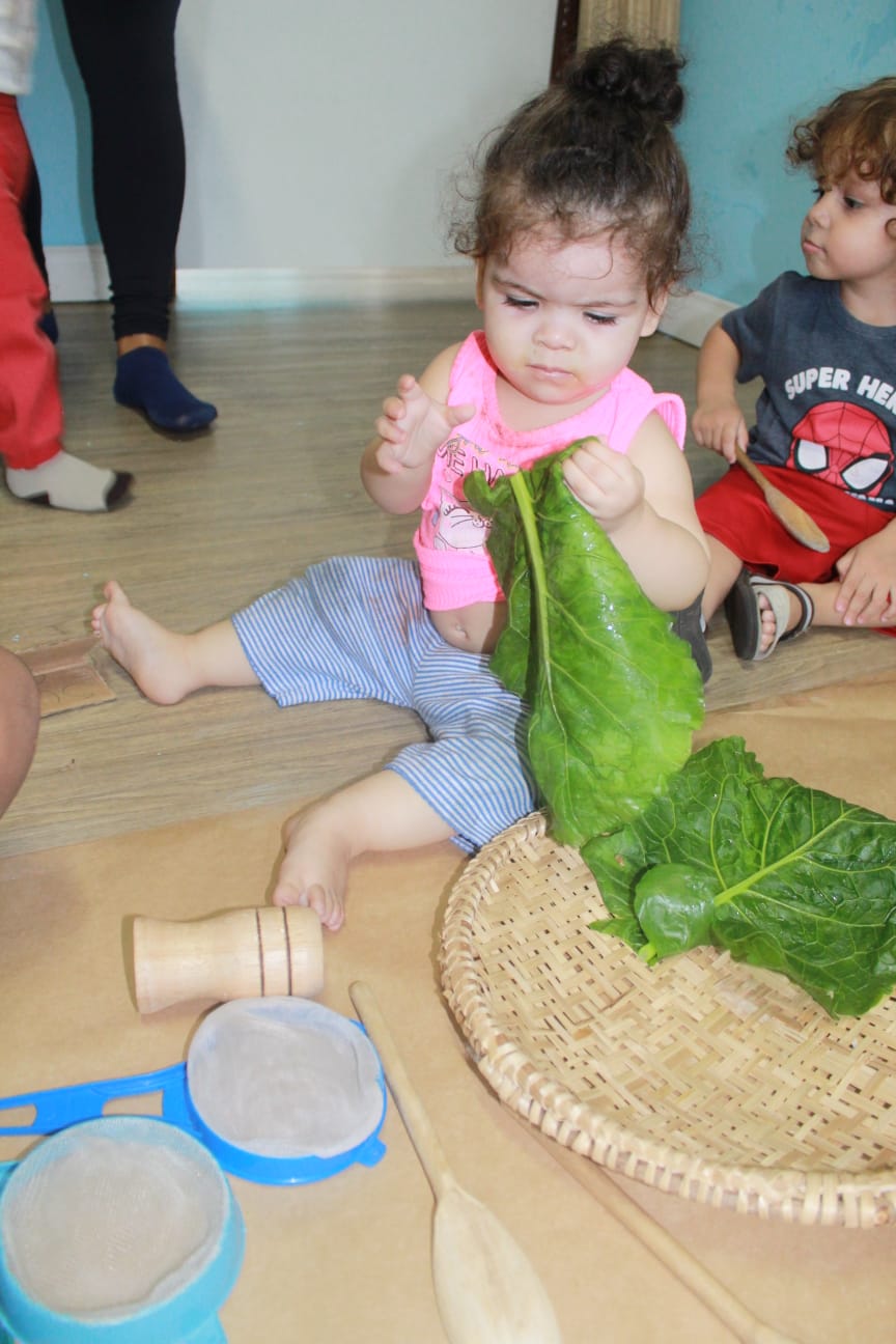 Crianças do Berçário constroem novas aprendizagens por meio da exploração da couve