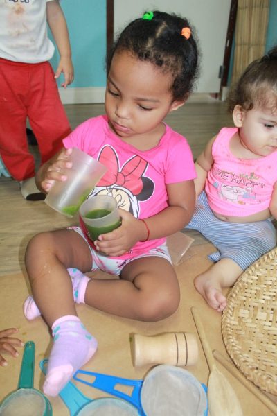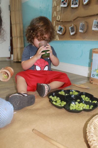 Neste mês de abril, em uma tarde ensolarada, a turminha do Berçário II-B do CEI Pingo de Gente, situado na Zona Sul de São Paulo, foi convidada a participar de um contexto investigativo sobre a couve, dentro do Projeto Sabores e cheirosda infância, que visa trabalhar a alimentação saudável. Nesta experiência, a equipe da cozinha teve uma participação especial: preparar a hortaliça, cozinhar, cortar os talos, elaborar o suco, picar a couve e triturá-la para as crianças vivenciarem a proposta.