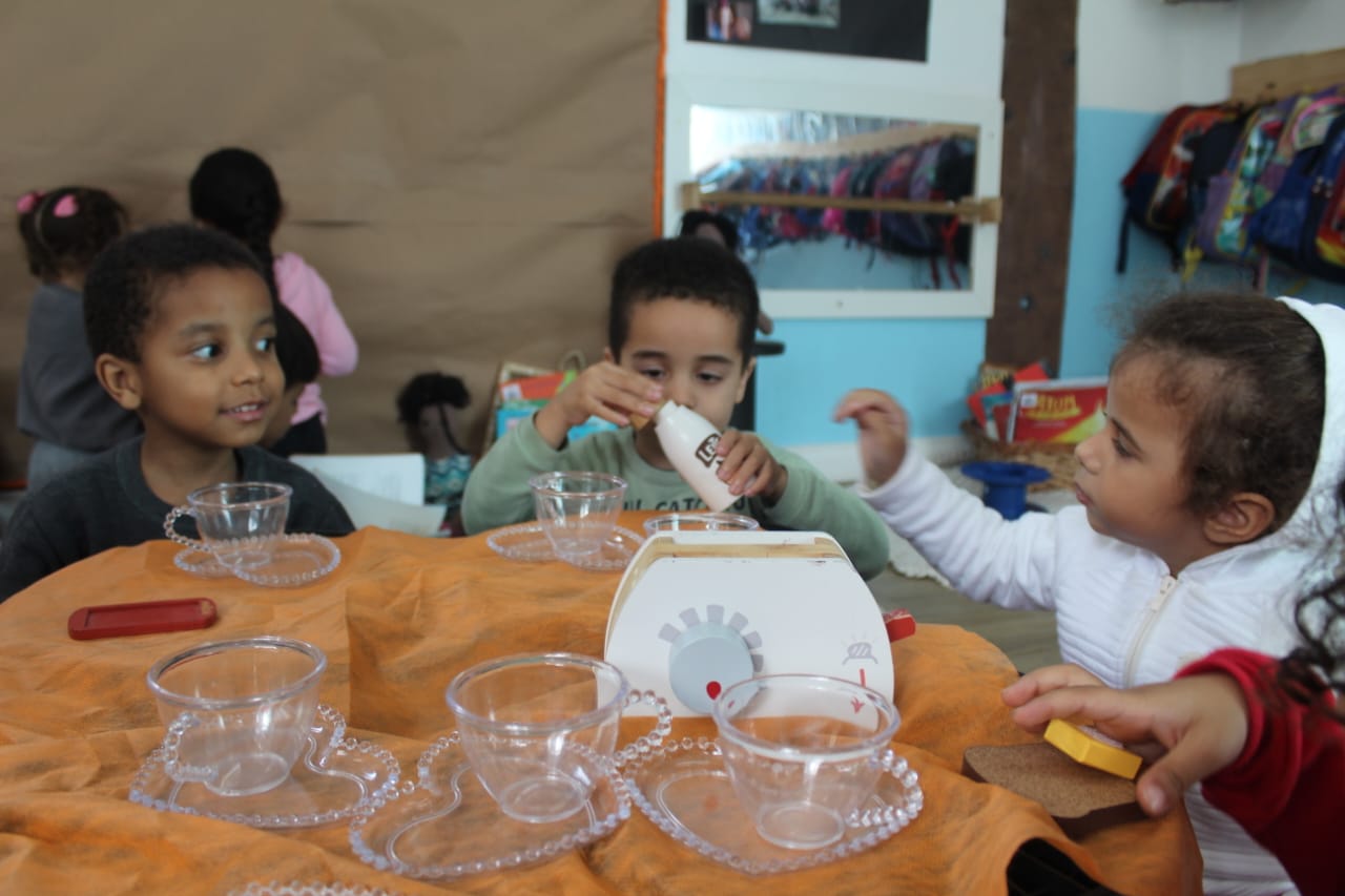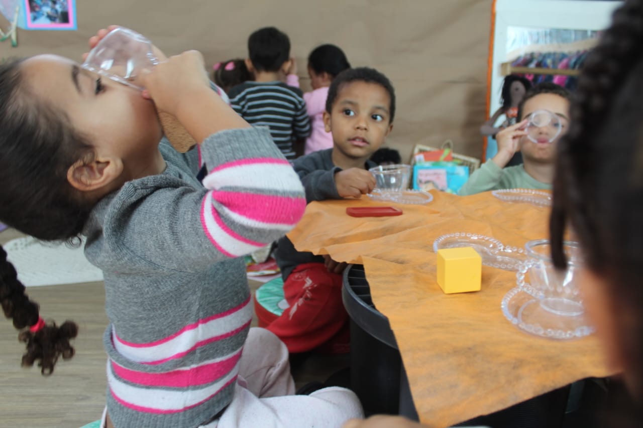 A professora Daniele preparou com carinho um ambiente acolhedor, repleto de encantamento, onde o simples gesto de “tomar um chá simbólico” se tornou oportunidade de encontro e de partilha. As crianças, lado a lado, não apenas degustaram o sabor do chá simbólico, mas também o gosto da convivência, da escuta e da amizade.