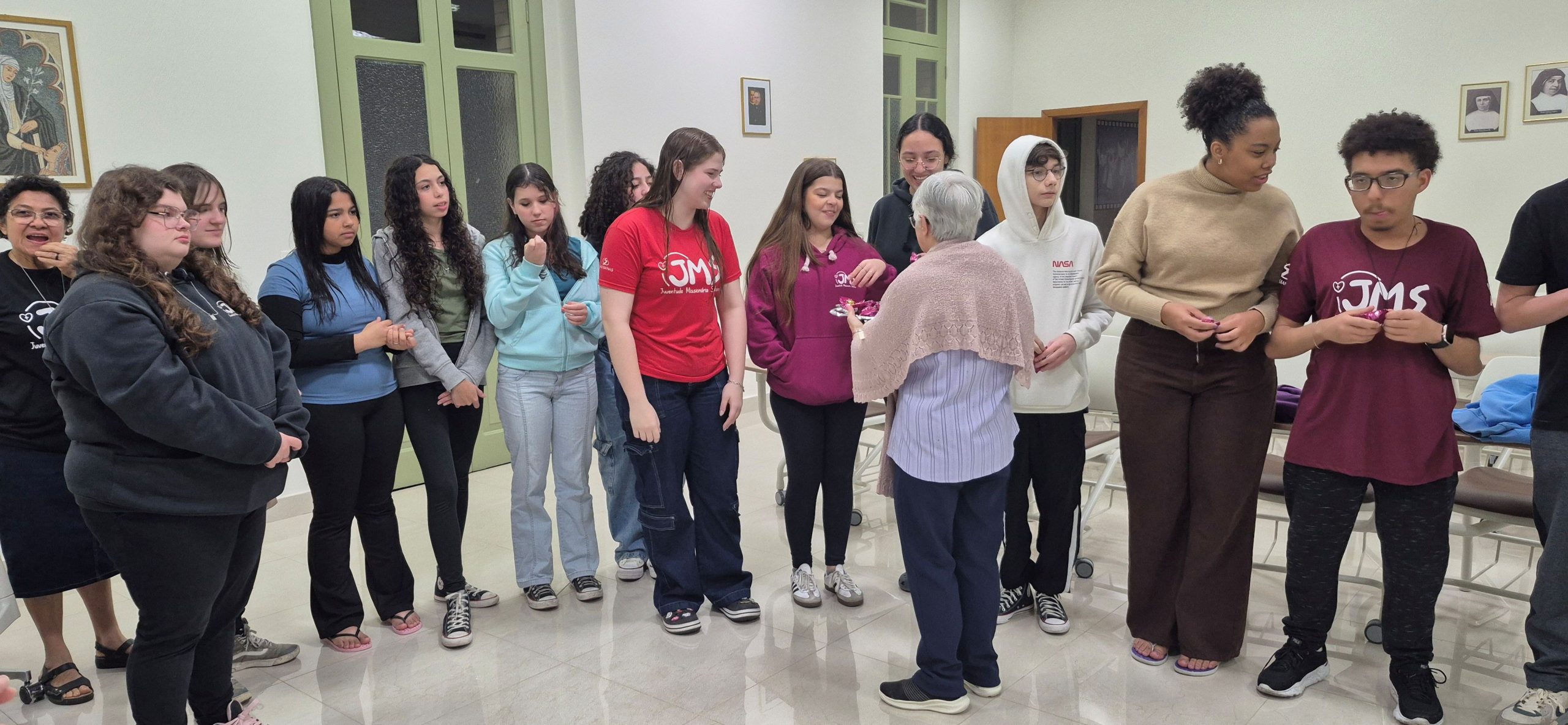 No final do sábado (6), os jovens tiveram um encontro com as Irmãs da comunidade da Casa Inspetorial. Foi um momento muito familiar, no qual alguns representantes do grupo agradeceram «pela oportunidade de passarem o fim de semana na casa das Irmãs». Como nos tempos de Valdocco e Mornese, a simplicidade marcou o encontro. Os jovens manifestaram toda a sua gratidão com um gesto muito marcante: um abraço “de presente” para cada Irmã!