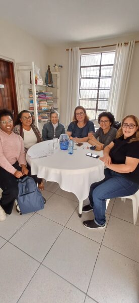 Além disso, houve uma conversa enriquecedora entre Irmã Sarah e membros da equipe, incluindo a Irmã Graça Rodrigues (FMA) – Coordenadora de Pastoral, Rosemeire Gomes – Coordenadora Inspetorial da Ação Social, Viviane Monteiro – Coordenadora do Projeto, Rosana de Jesus – Assistente do Projeto e Eliana Rocha – Gestora de Parceria da Secretaria Municipal de Assistência e Desenvolvimento Social. Nesse diálogo, foram discutidos temas centrais sobre a organização política do território, a situação dos Direitos Humanos e o sistema de garantia de direitos no Brasil. Foi um momento profundo, que proporcionou uma troca de experiências valiosas e reflexões sobre as necessidades e os desafios enfrentados na promoção dos direitos.