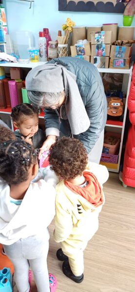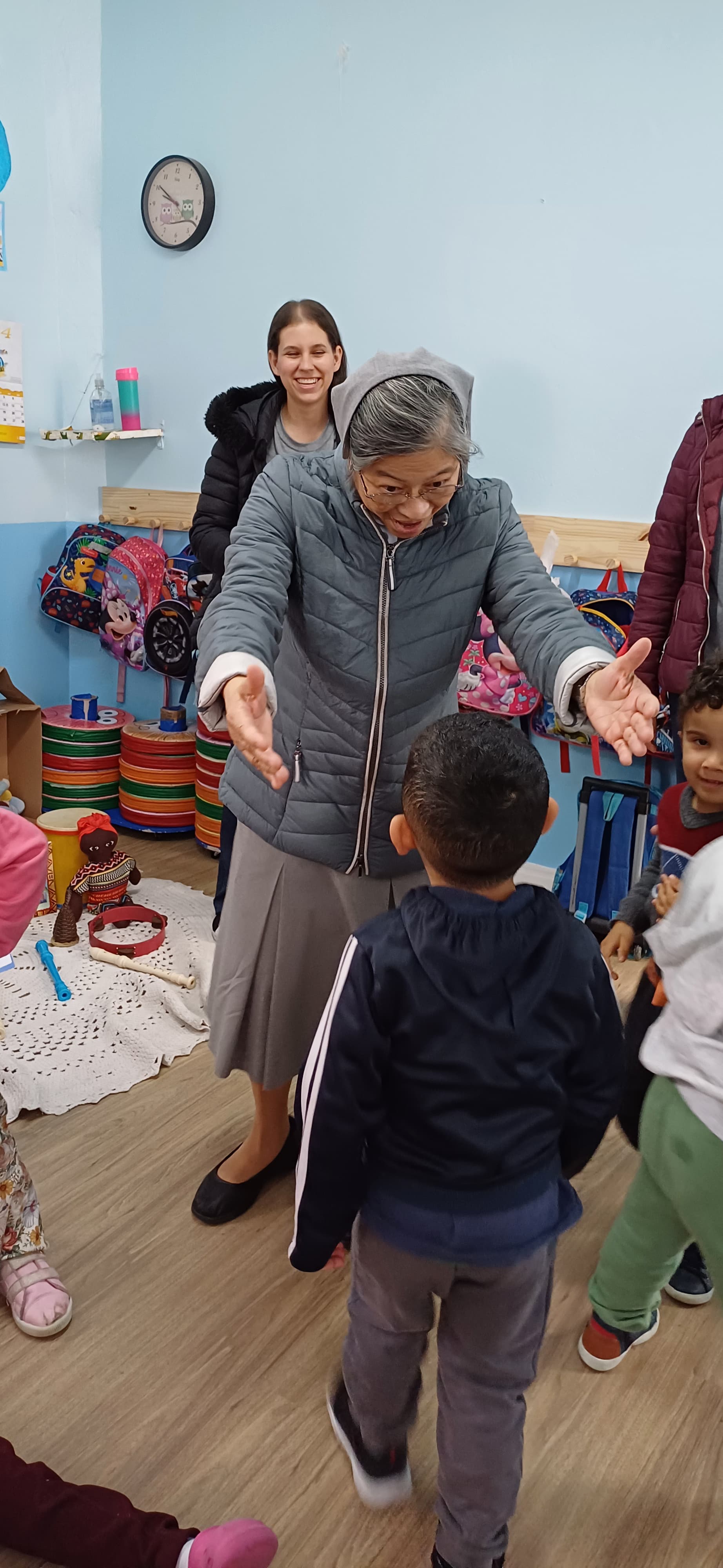 As crianças e adolescentes do CCA Santa Lúcia receberam Irmã Sarah com entusiasmo, protagonizando apresentações que destacaram as atividades educativas e sociais desenvolvidas na Instituição. Foi um momento de alegria, em que a dedicação e o talento das crianças revelaram a importância desse espaço na vida de cada uma delas. A visita também se estendeu ao Centro de Educação Infantil – CEI Pingo de Gente, onde o clima foi de afeto e proximidade. Irmã Sarah teve a oportunidade de interagir com os bebês e os educadores, num ambiente de ternura que tocou profundamente a todos os presentes.
