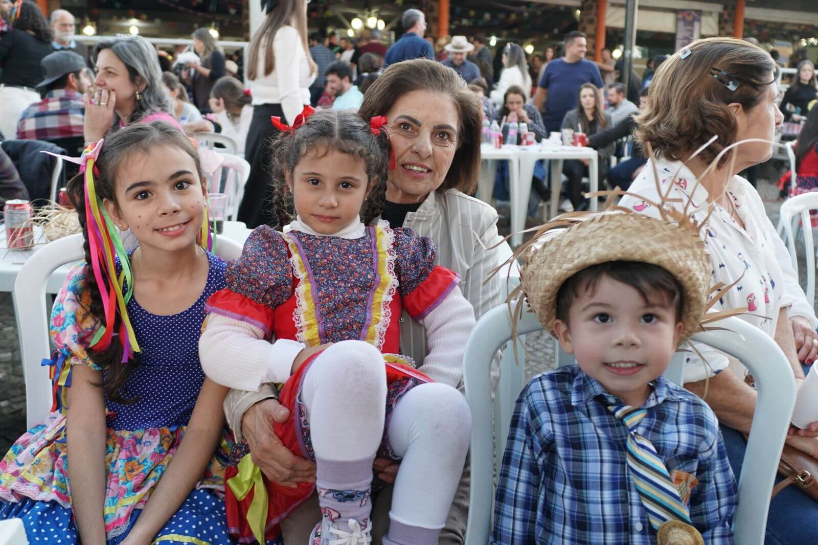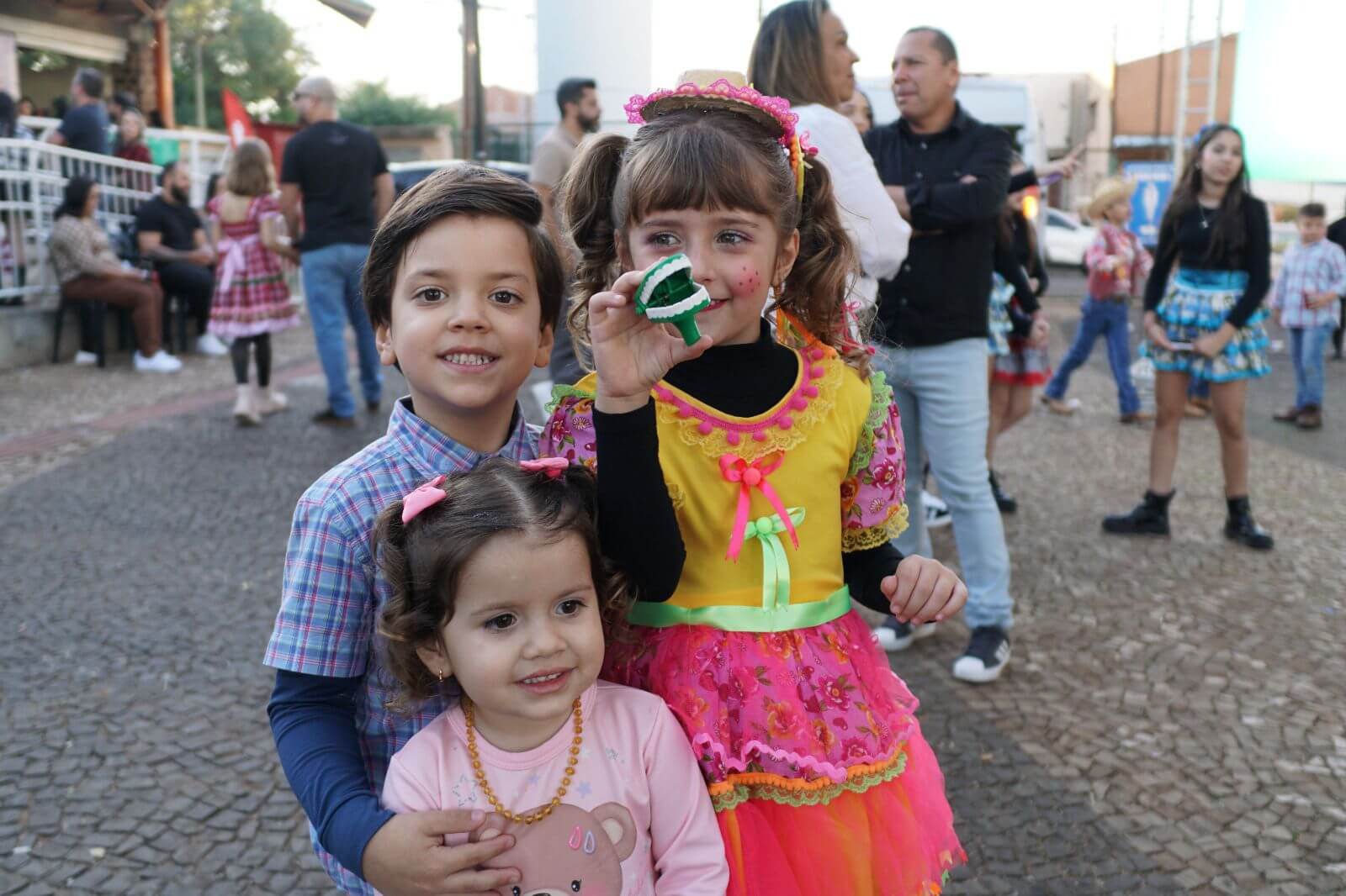 As apresentações de quadrilha encantaram o público, especialmente com os trajes coloridos e a animação dos participantes. Além disso, brincadeiras como pescaria e correio elegante garantiram a diversão da garotada.