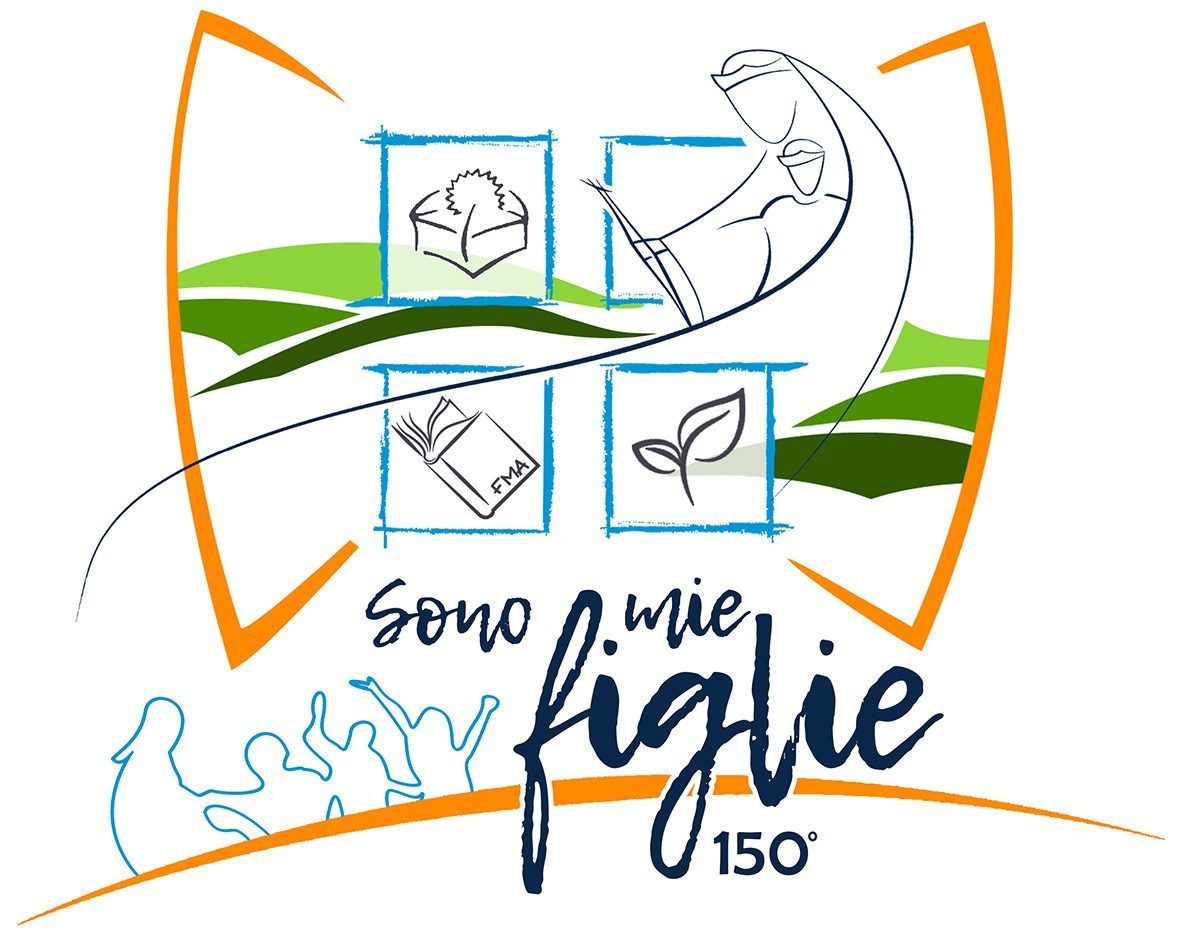 O logotipo da festa lembra as origens da história do Instituto FMA e alguns aspectos da espiritualidade salesiana. Maria Auxiliadora acompanha e guarda o carisma salesiano. Seu manto se desdobra ao longo da história e atravessa os lugares que viram nascer e realizar o sonho de Dom Bosco e Madre Mazzarello. As férteis colinas de Monferrato vislumbram-se no horizonte , sinal da concretude e do vínculo dos Fundadores com a sua terra.