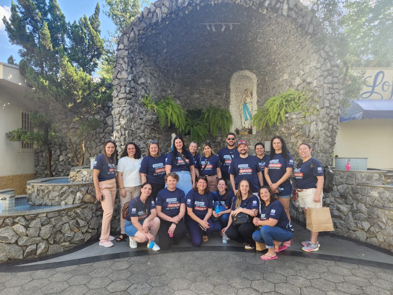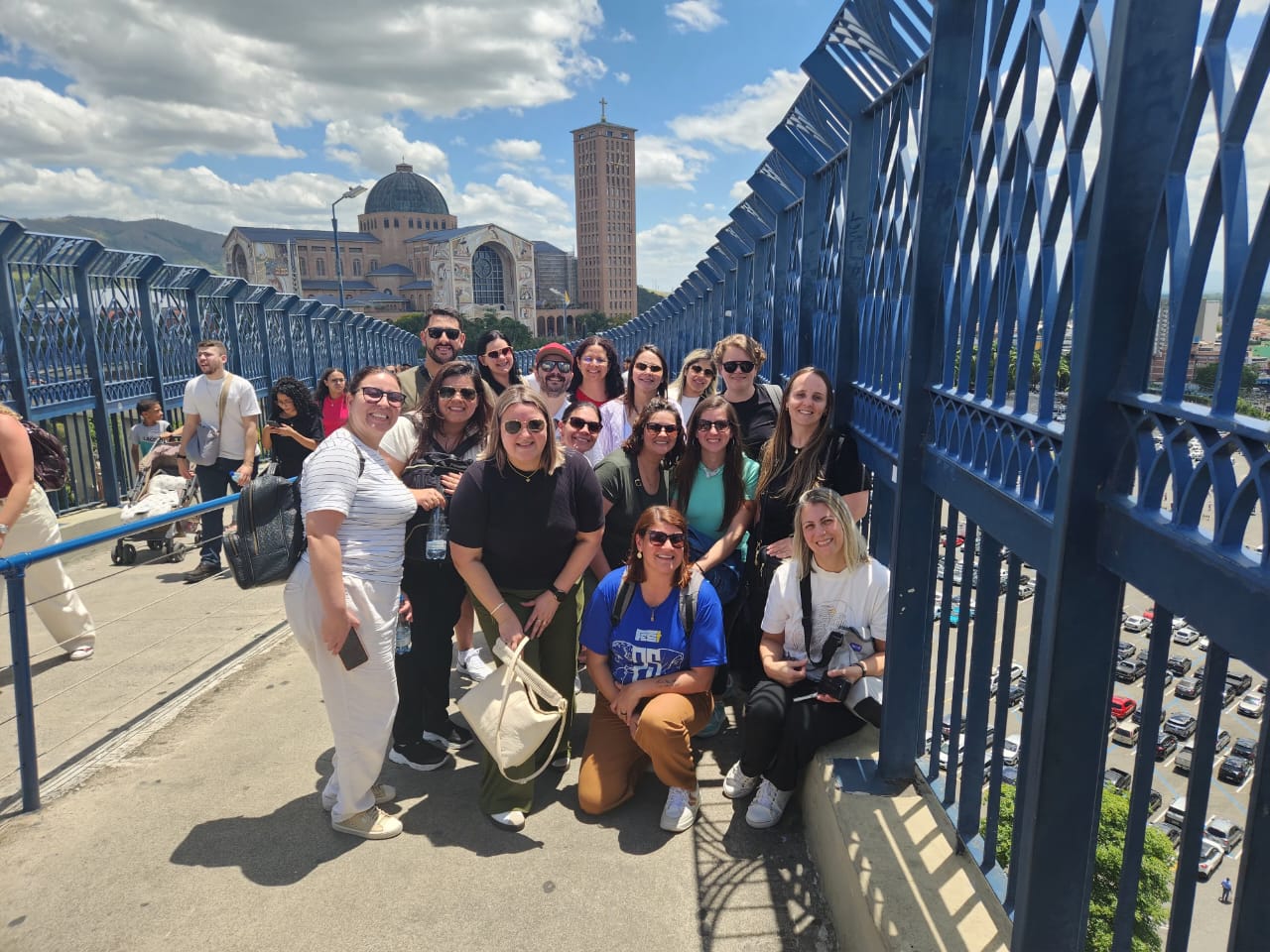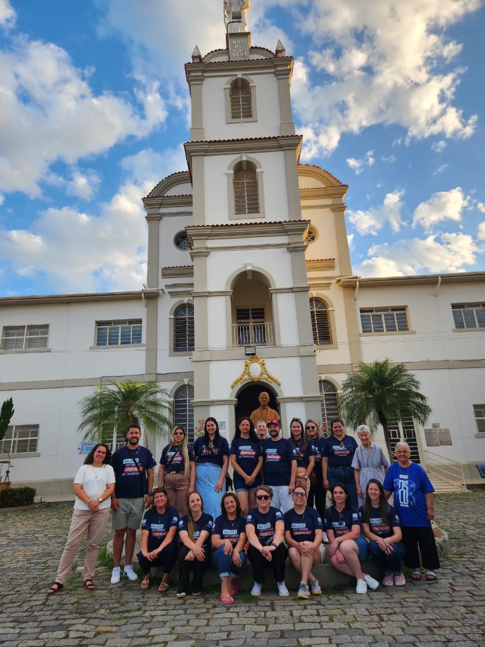 A jornada começou no Santuário Nacional de Nossa Senhora Aparecida, em Aparecida (SP), onde o grupo participou da missa às 16h e passou pela Porta Santa, momento especial de graça e renovação espiritual. Os educadores permaneceram no complexo da basílica durante todo o dia, das 10h às 18h, e vivenciaram momentos de oração diante da imagem de Nossa Senhora Aparecida, renovando seu compromisso com a missão educativa sob a proteção da Padroeira do Brasil.