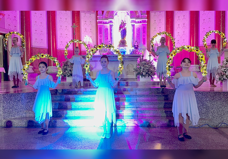 Logo no início, houve a entrada da imagem de Dom Bosco e dos colaboradores do Colégio Dom Bosco. Em seguida, a entrada da imagem de Madre Mazzarello e dos colaboradores do IMA. Durante a missa, as alunas do Grupo de Dança Extraclasse do IMA realizaram lindas coreografias em dois momentos: na entrada da Palavra e na entrada das coroas.