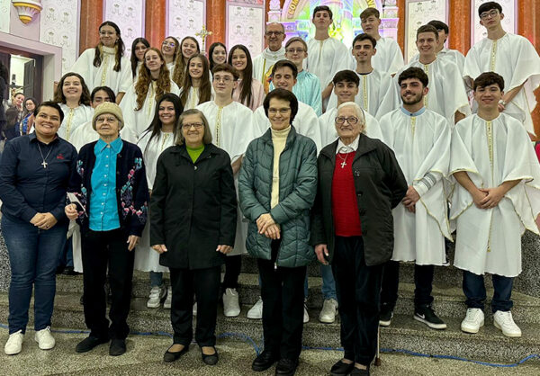 Irmã Gema Olivo, natural da cidade de Urubici, na Serra Catarinense, reside há um ano e meio na Comunidade das Filhas de Maria Auxiliadora do IMA. Em sua vida religiosa, já presenciou inúmeras cerimônias de Coroação. Para ela, a celebração de ontem foi muito linda e especial, pois a Igreja estava muito bem preparada e o público presente muito tranquilo. “O sermão do padre Renato exaltou o amor a Maria Auxiliadora. Creio que Dom Bosco não teria feito diferente! Suas palavras tocaram o coração de todos os presentes, era nítido ver a emoção e a alegria nas famílias. Me senti muito orgulhosa em ser salesiana. O vigário foi muito feliz em sua homilia e eu saí de lá convencida de que o povo estará cada vez mais presente e participando com suas famílias das celebrações”.