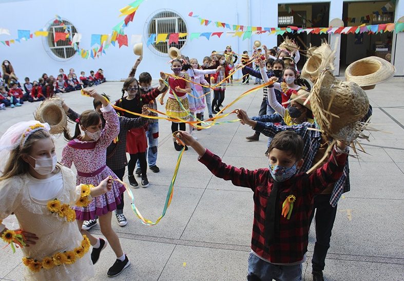 O segmento da Educação Infantil teve dois dias de grandes eventos. Na quarta, dia 7, os alunos se reuniram no parque de borracha para apresentar suas coreografias. Todos se divertiram muito com as danças e com a possibilidade de se apresentar para os coleguinhas e professoras. Já no dia 8, foi o momento de aproveitar as brincadeiras da Pescaria e Boca do Palhaço, ganhar muitos prêmios e experimentar comidinhas típicas preparadas para eles. Os pais dos alunos do Maternal foram convidados a vir para a escola no final da tarde para curtir um momento de brincadeira com os filhos no pátio. Foi lindo poder proporcionar esse tempo de interação entre pais e filhos na escola.