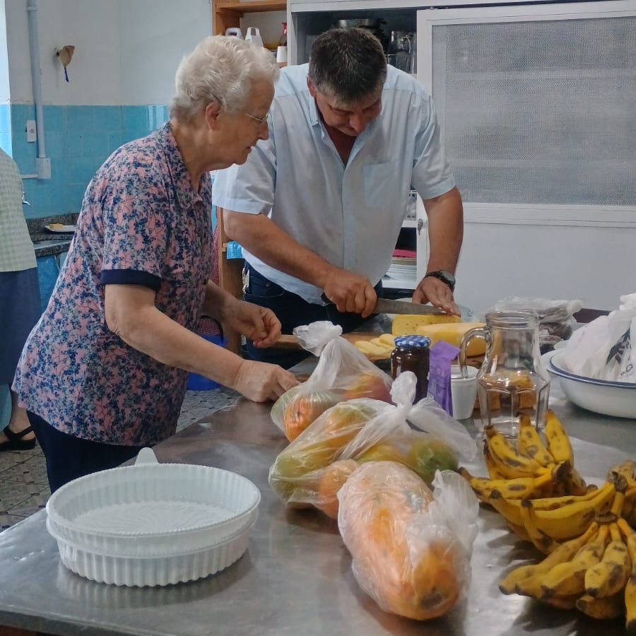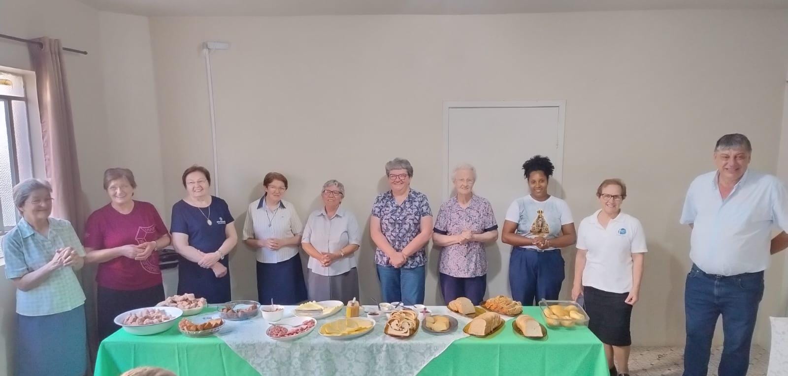 No encerramento do encontro, para o café e lanche da manhã do dia 3, Dom Frei Cleonir Paulo Dalbosco, O.F.M.Cap., bispo de Bagé, convidou as religiosas a organizarem o momento, incluindo uma saborosa receita de grostoli, doce popular da tradição italiana que marcou a convivência.