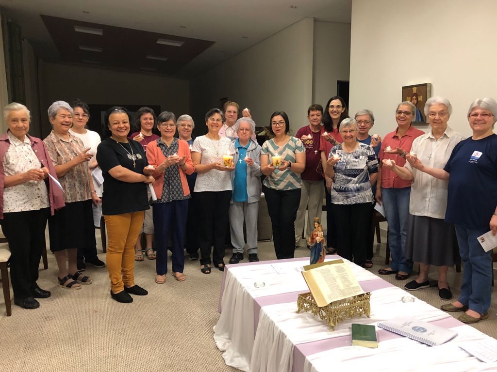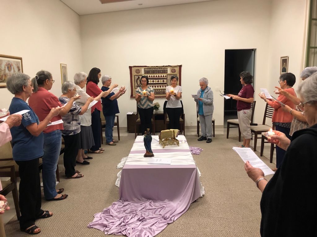 As Irmãs do Conselho juntamente com a comunidade da Casa Inspetorial fizeram a celebração de envio das Irmãs capitulares, Ir. Nilza Fátima de Moraes e Ir. Solange Sanches.