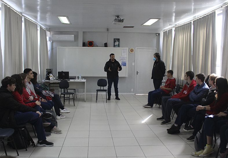 Promover bate-papos descontraídos entre profissionais de diversas áreas com alunos do Ensino Médio é uma prática que já acontece há alguns anos no Instituto Maria Auxiliadora, de Rio do Sul (SC). Dessa vez, 13 profissionais participaram simultaneamente, em vários ambientes da escola, de rodas de conversa mediadas pelos professores. Foram convidados profissionais das áreas de Engenharia, Direito, Saúde, Segurança, Empreendedorismo, Tecnologia e Química. Cada aluno pôde se inscrever em duas rodas de conversa.