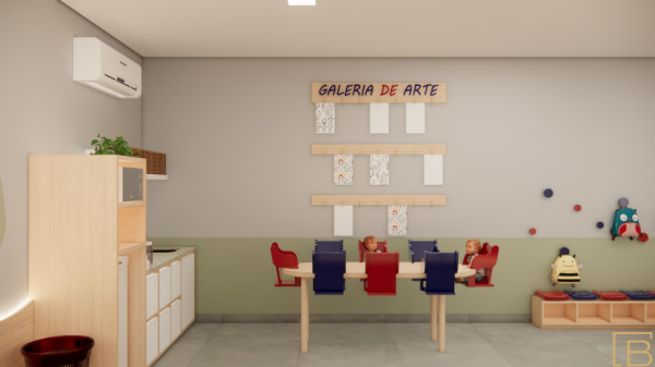 Salas ampliadas e mais iluminadas, com ventilação otimizada e climatização; Portas e janelas ampliadas para melhor circulação e conforto; Pisos e revestimentos de fácil limpeza e alta durabilidade, adequados ao uso infantil; Adequações de acessibilidade e segurança; Criação/qualificação de áreas pedagógicas especiais, como ateliê de luzes, ateliê de psicomotricidade, ateliê de pintura, ateliê de texturas, espaço de descanso e áreas externas de convívio e brincadeiras; Mobiliário escolar adequado à faixa etária, privilegiando ergonomia e autonomia.